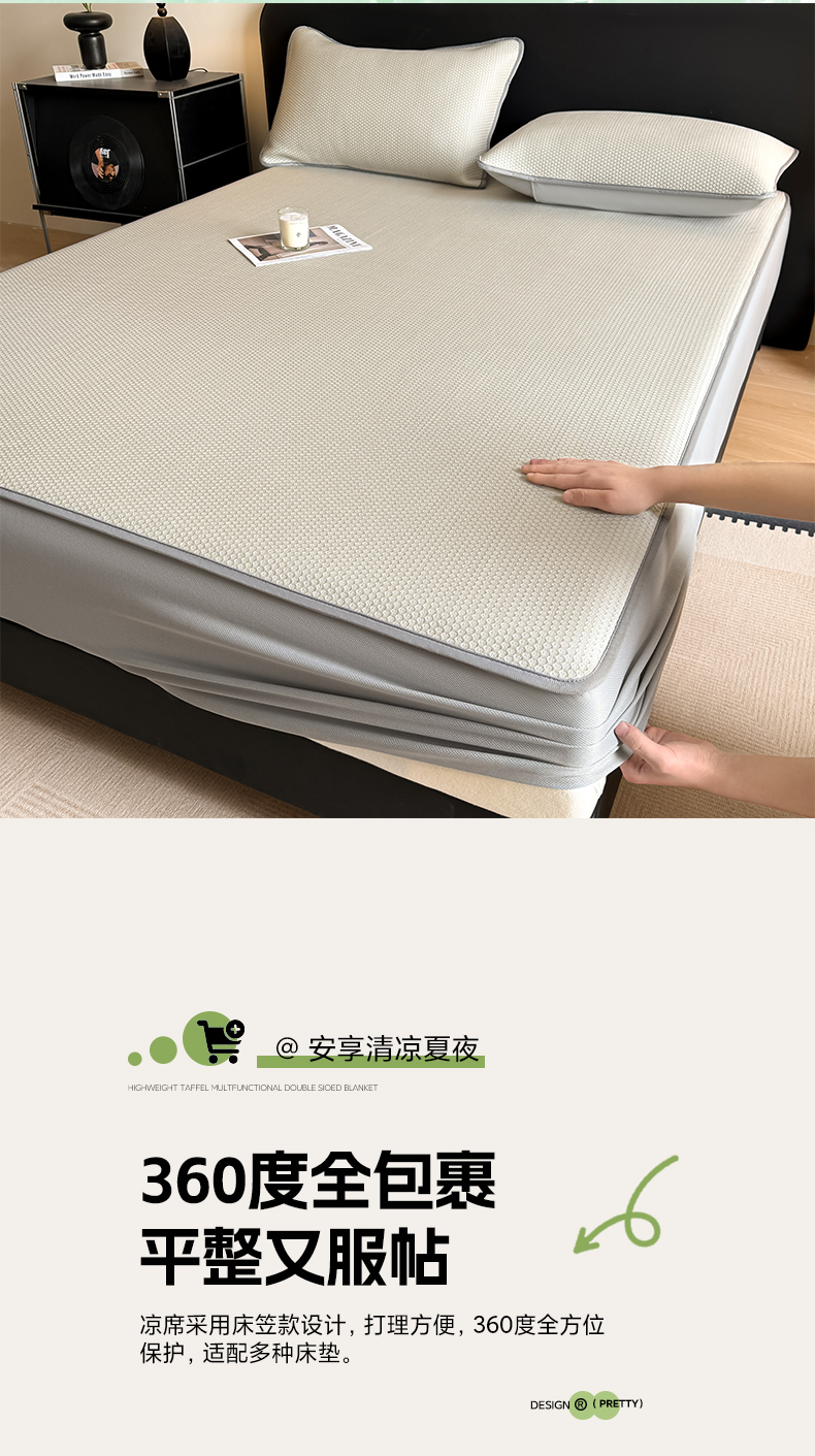 当前位置: 91家纺网 > 商品网购 > 床上用品 > 凉席 > 其他凉席 > 欧邦 2026新款PE中分子提花冰豆豆床笠凉席 蜂巢-草绿-凉席款
