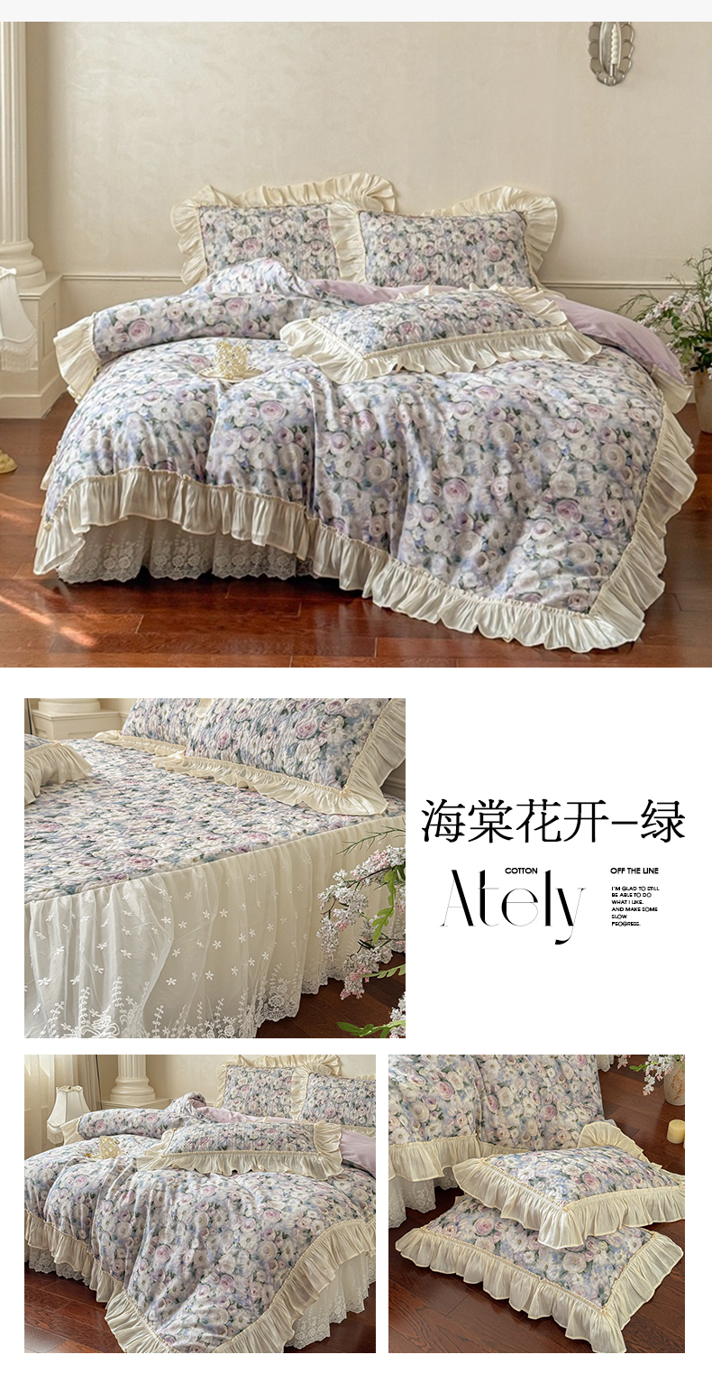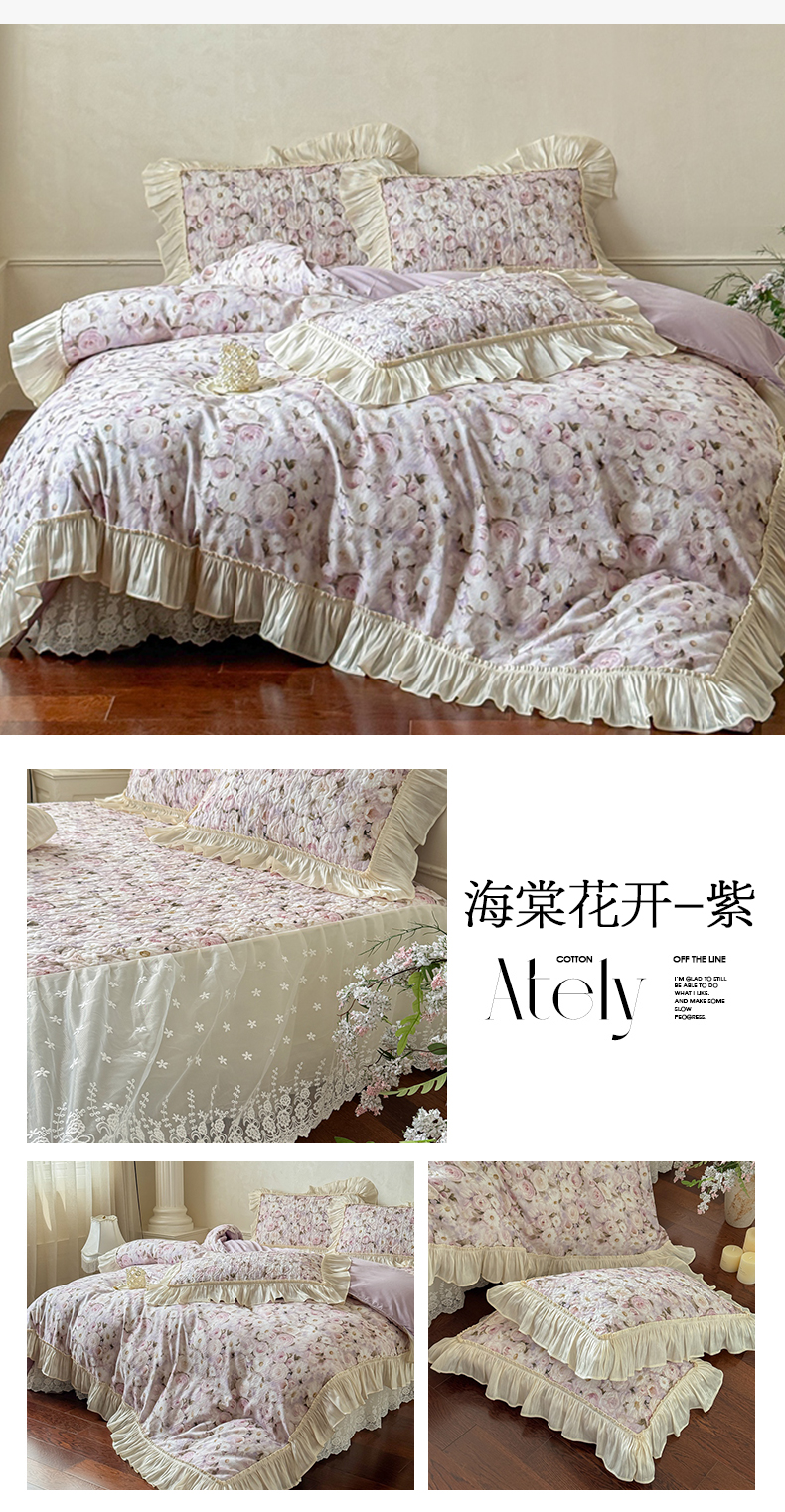 (总)花香四季家纺 2026新款全棉双层纱床裙三件套,半夏,海棠花开-紫,海棠花开-绿,洛丽可,朝花夕拾