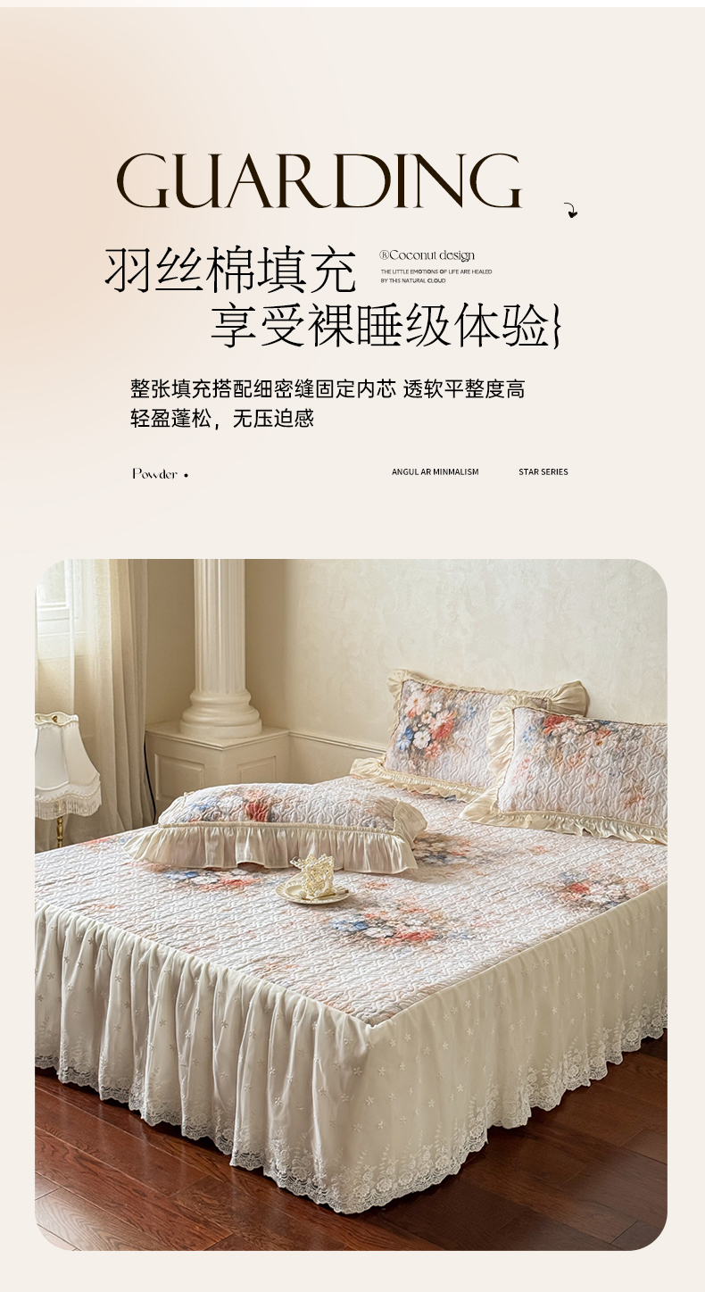 (总)花香四季家纺 2025新款法式夹棉绗缝床裙单件三件套蕾丝公主风-可可甜心,可可甜心-玉,可可甜心-白,可可甜心-灰,可可甜心-绿,可可甜心-紫