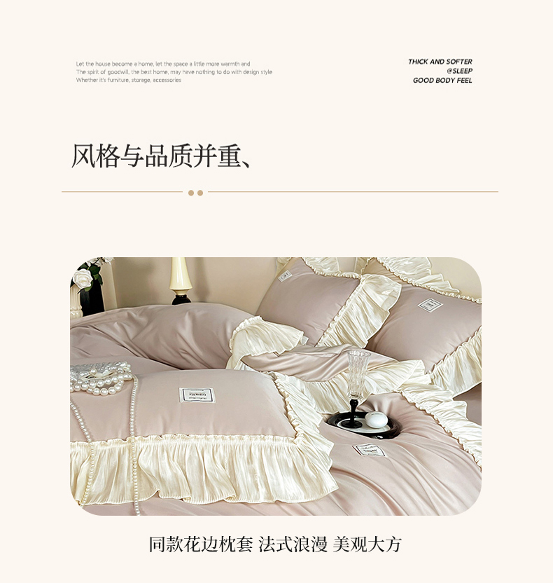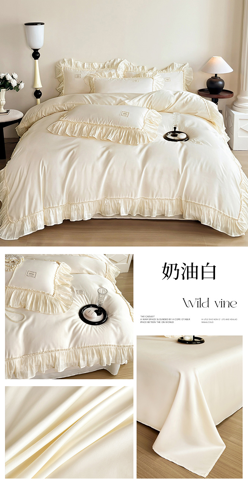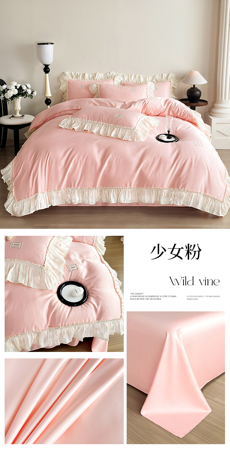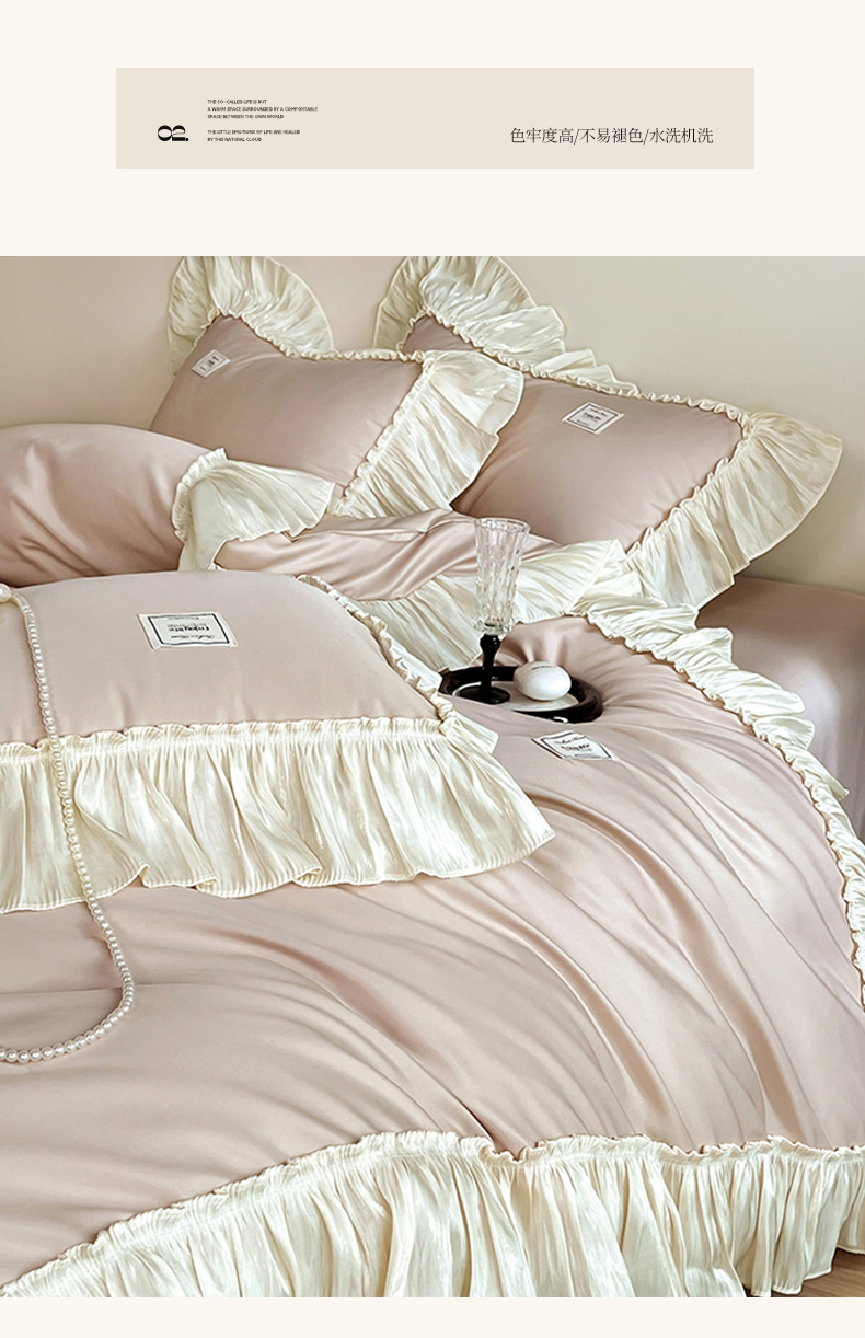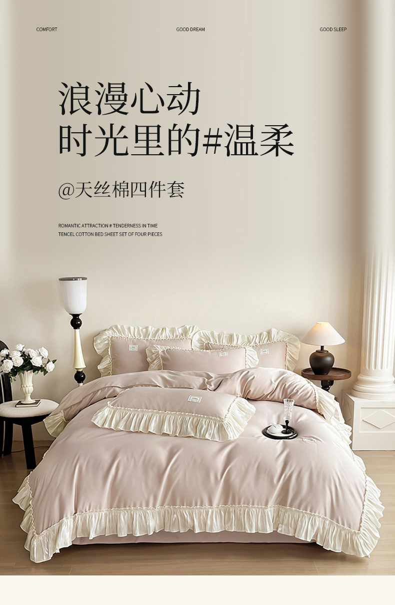 (总)花香四季家纺 2025新款天丝棉床裙款四件套-倾城,倾城-白,倾城-粉