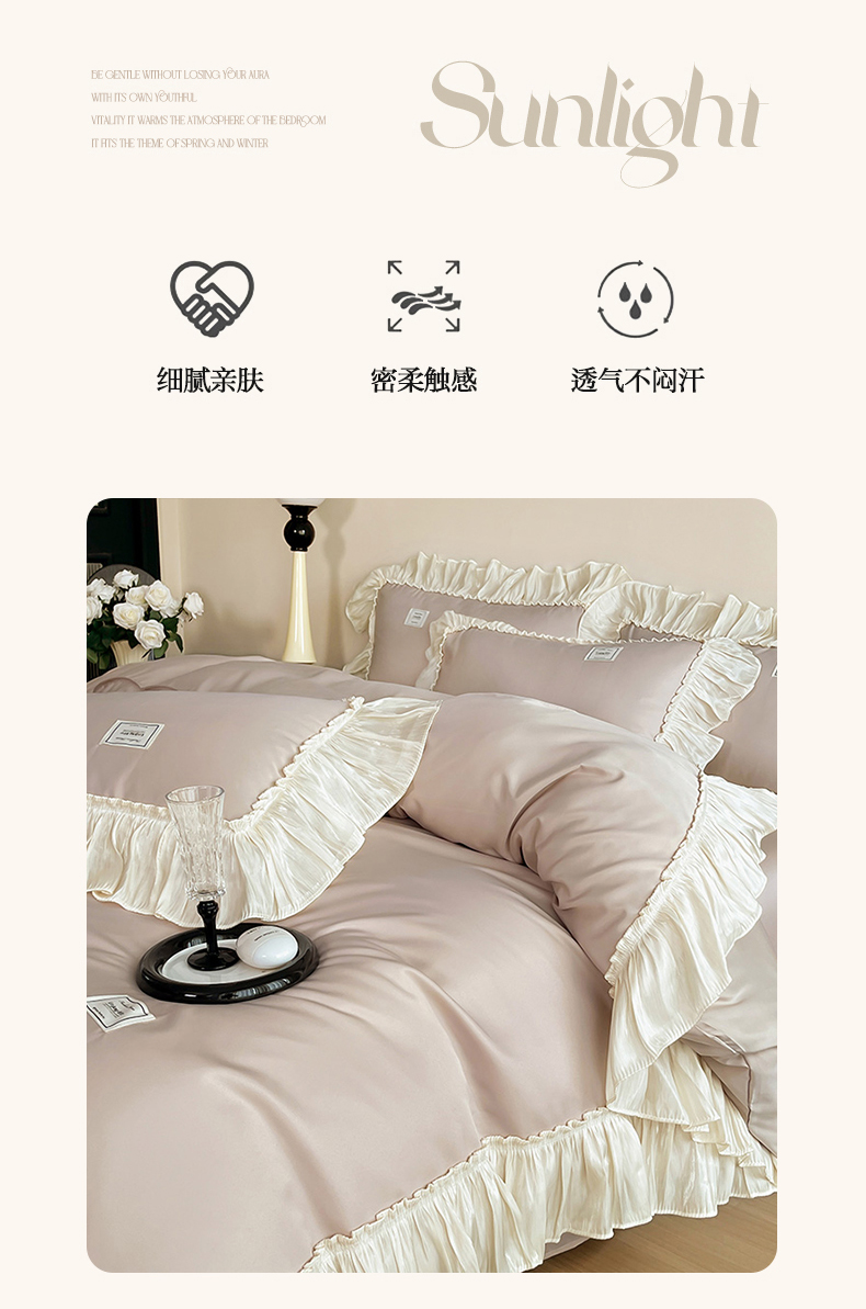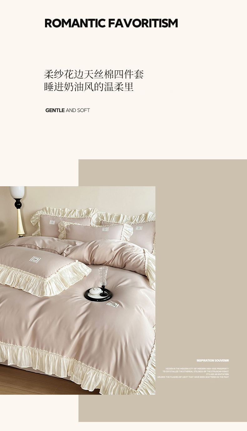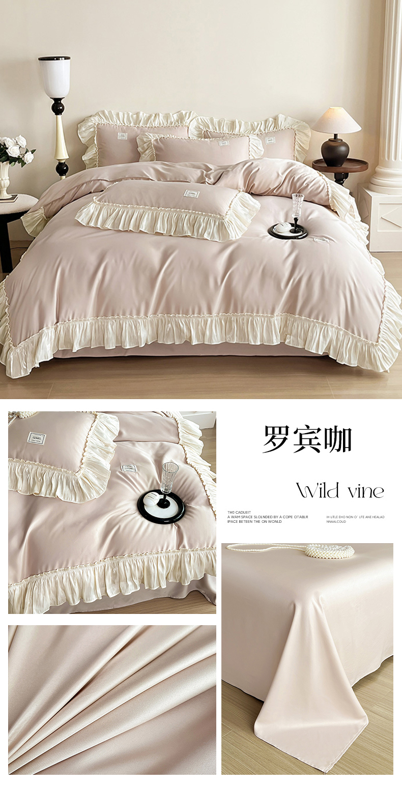 (总)花香四季家纺 2026新款亲肤天丝棉四件套,罗宾咖,少女粉,奶油白
