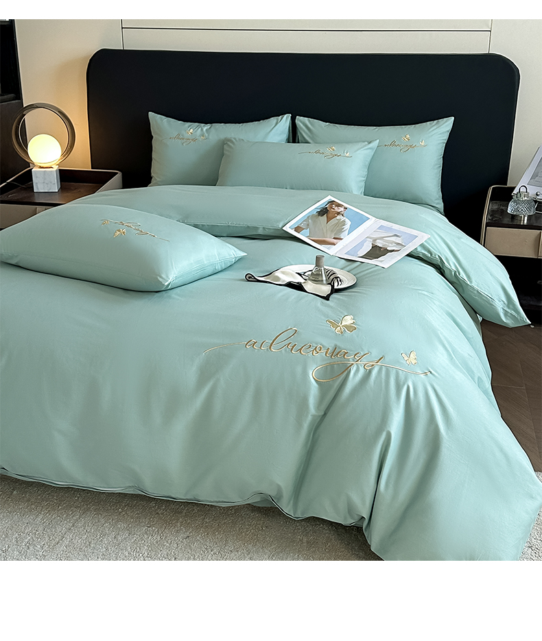当前位置: 91家纺网 > 商品网购 > 床品套件 > 四件套 > 全棉普通四件套 > 湘雪家居 2026新款纯棉全棉长绒棉刺绣绣花高端礼盒四件套-蝶恋系列 舞蝶-天蓝