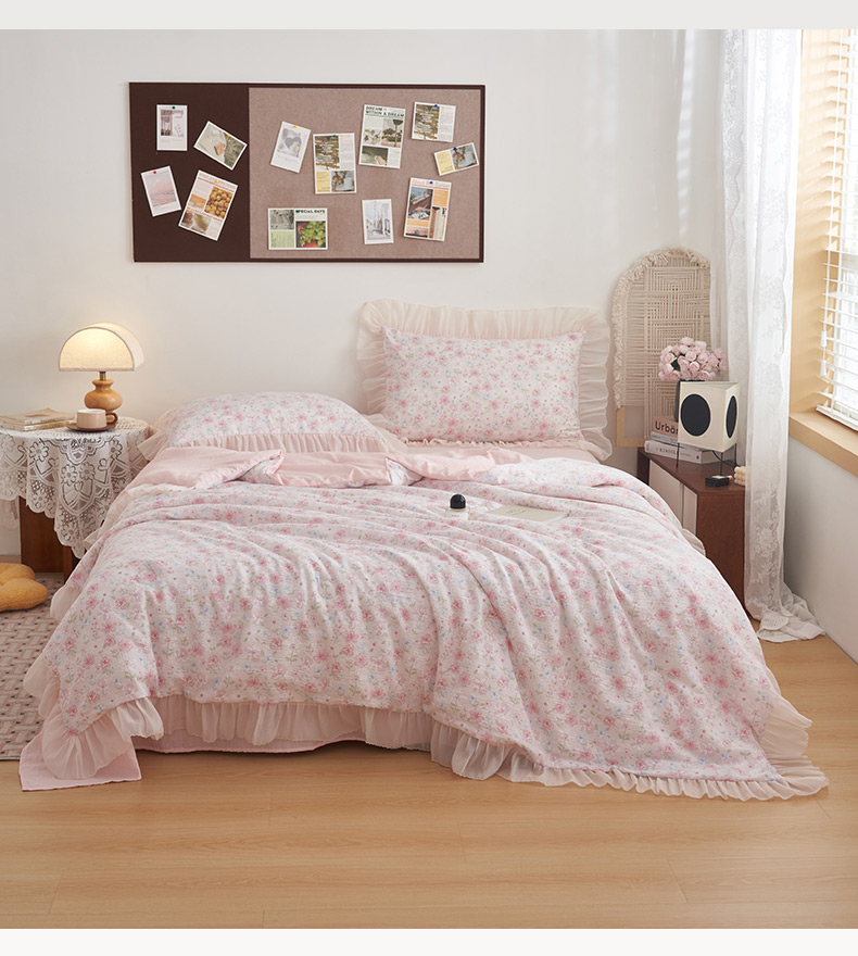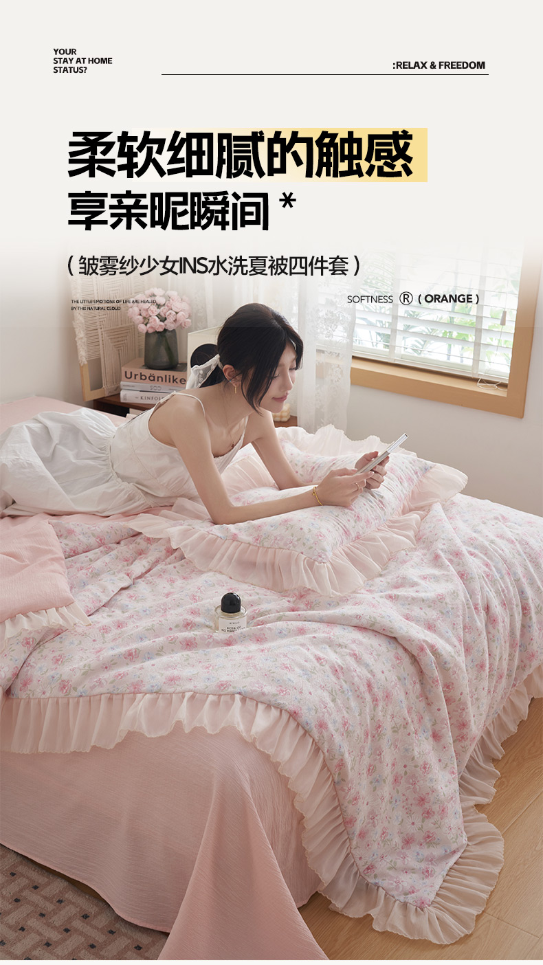 当前位置: 91家纺网 > 商品网购 > 床品套件 > 四件套 > 夏被四件套 > 晨曦家纺 2026新款皱雾纱水洗夏凉被夏被四件套少女ins风韩版 雾里蔷薇