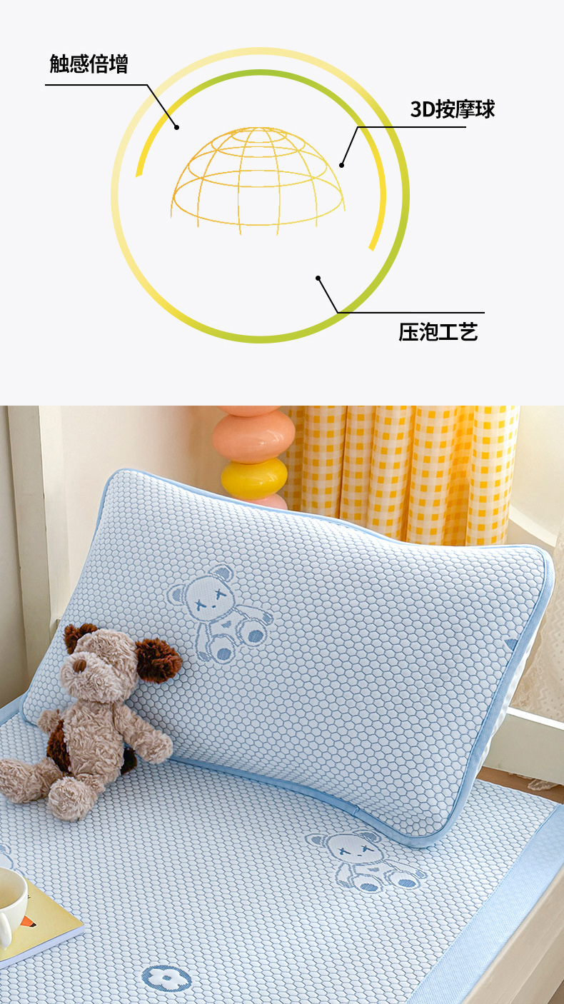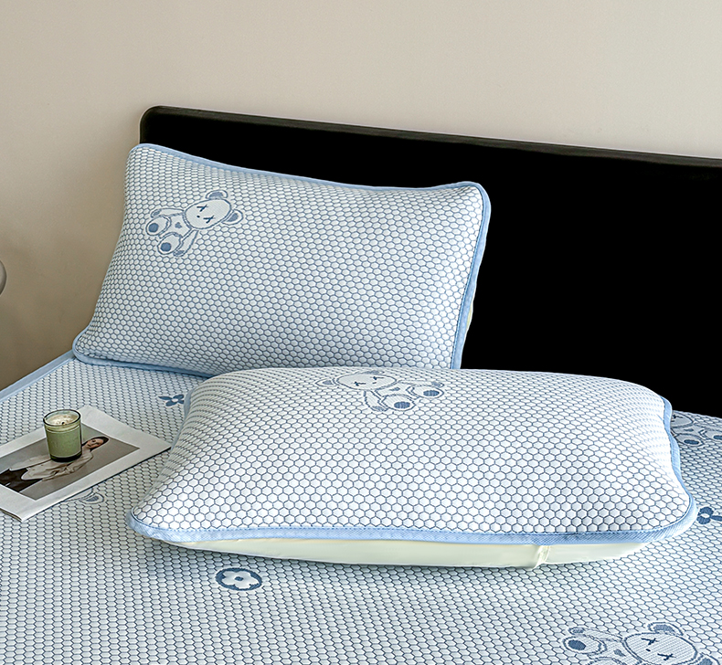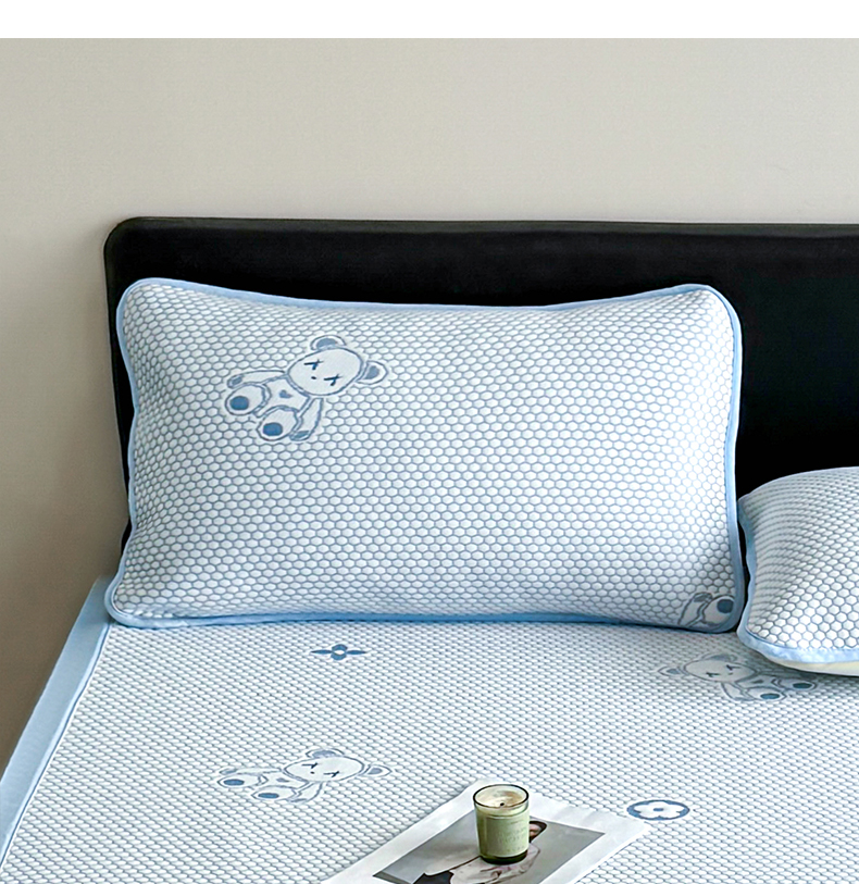 商品名称:奇丝雅 2026新款夏季A类卡通冰豆豆冰丝凉席枕套凉感家用可机洗单人学生宿舍48×74cm一只一对 抱抱熊-蓝