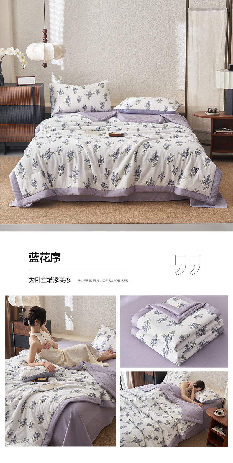 (总)晨曦家纺 2026新款皱雾纱水洗夏凉被夏被四件套少女ins风韩版,奶油花篱,蓝花的信,松烟星子,素墨蝶语,雾里蔷薇,云间花信,雾紫花信,组合图仅展示