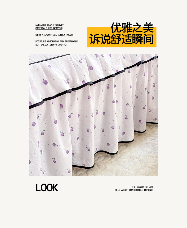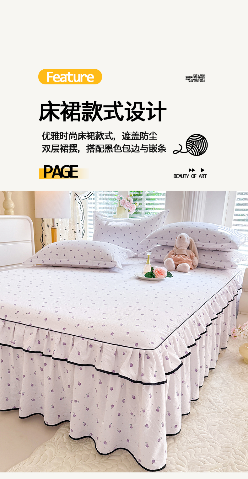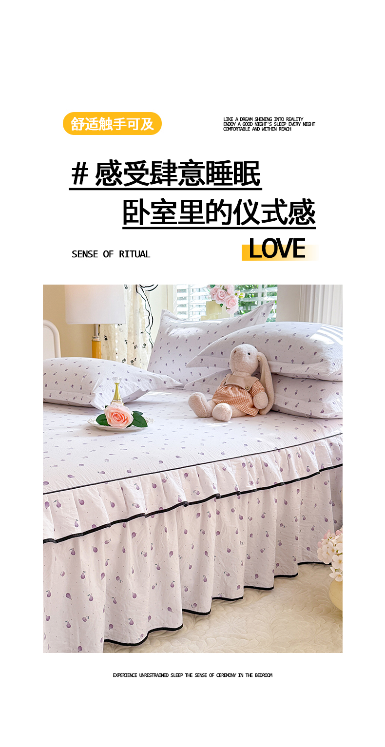 当前位置: 91家纺网 > 商品网购 > 床上用品 > 床裙 > 优家居 2026新款A类水洗棉床裙单件三件套皱皱纱韩版公主风花边床罩直播爆款外贸定制 一口葡萄