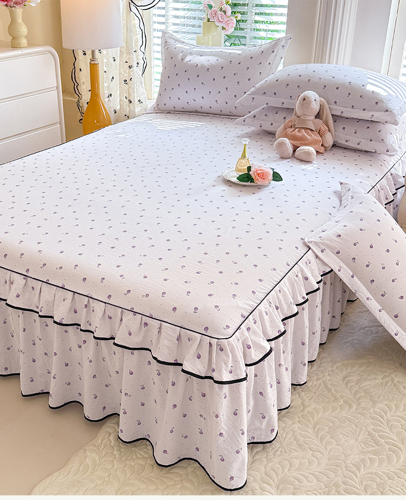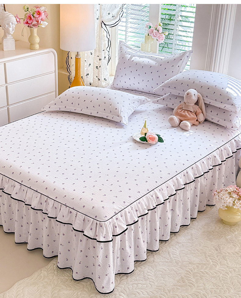 优家居 2026新款A类水洗棉床裙单件三件套皱皱纱韩版公主风花边床罩直播爆款外贸定制 一口葡萄