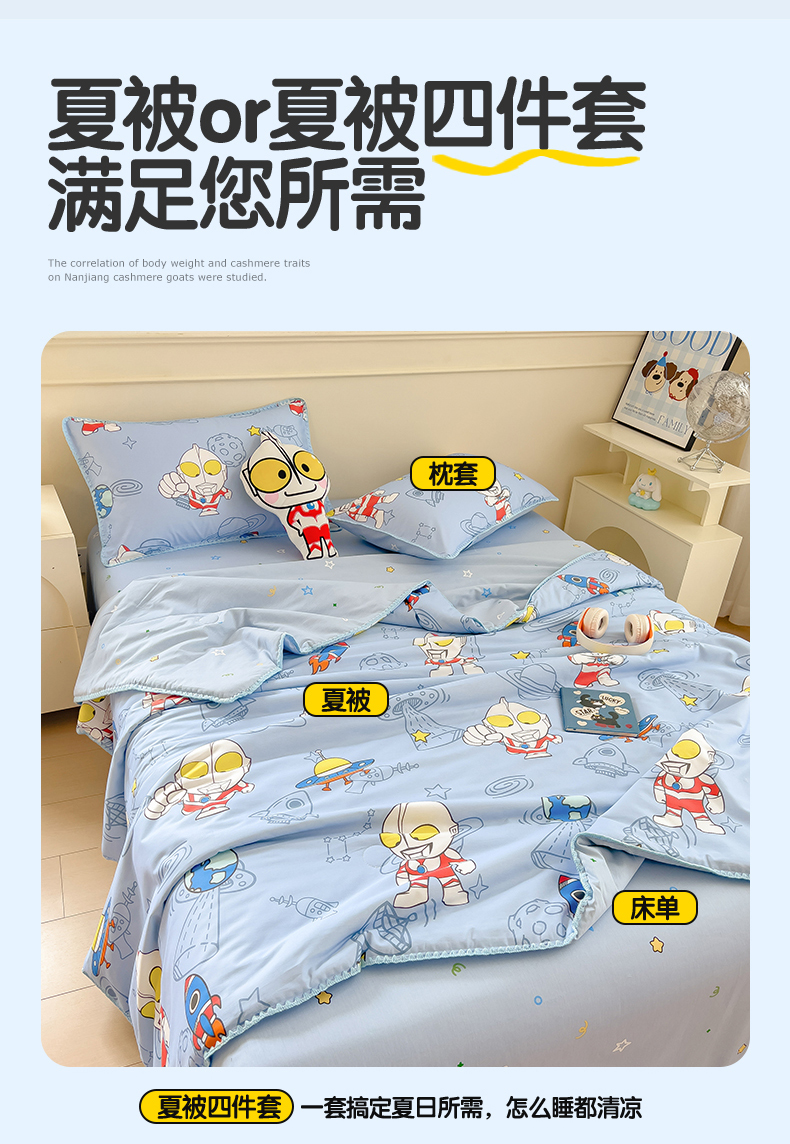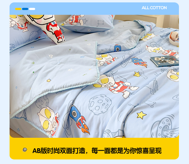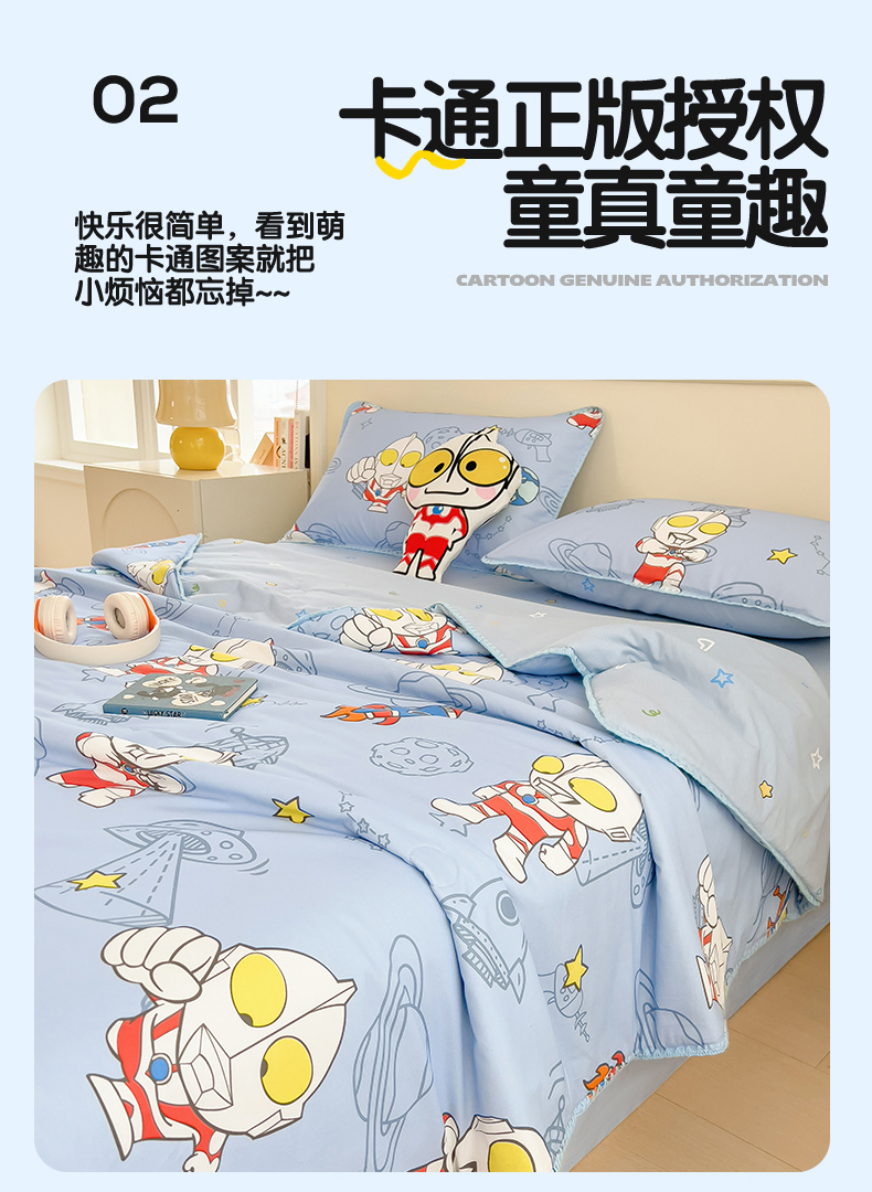 商品名称:兄弟坊 2026新款正版授权卡通全棉13370印花夏被夏凉被儿童被 夏被四件套 星舰蓝奥特