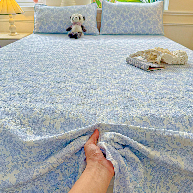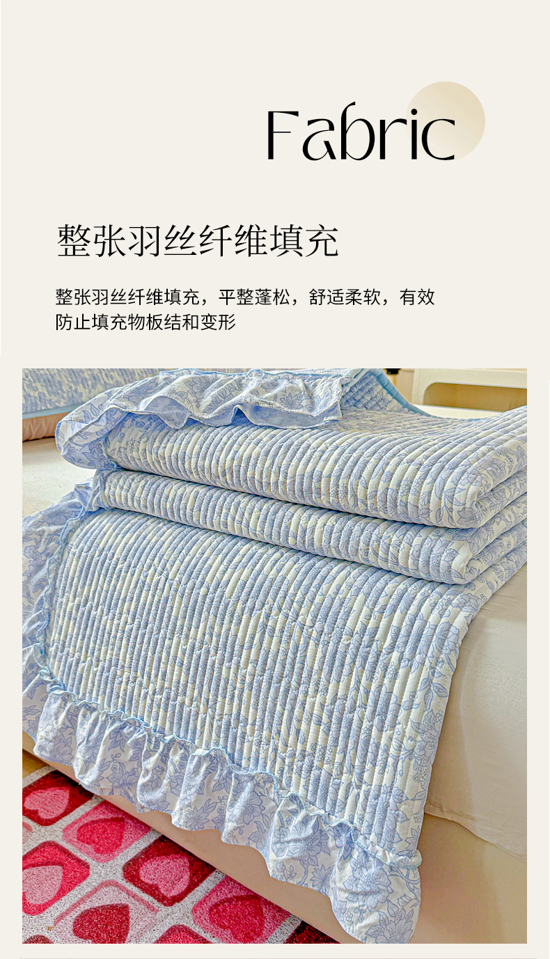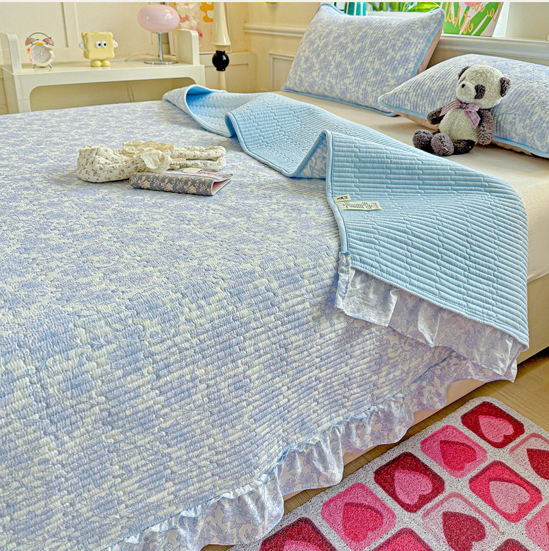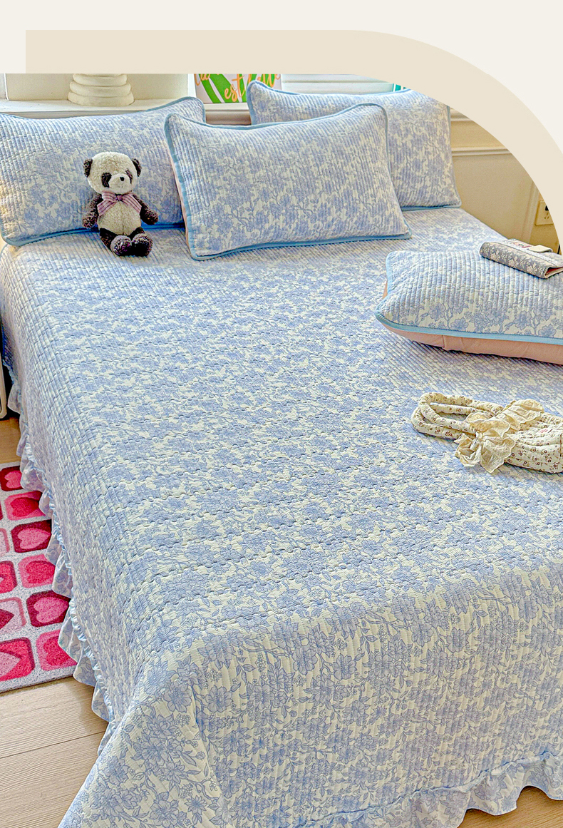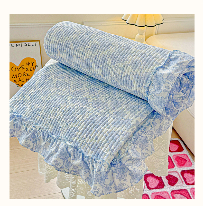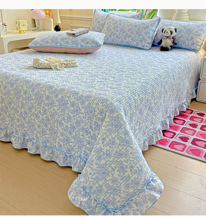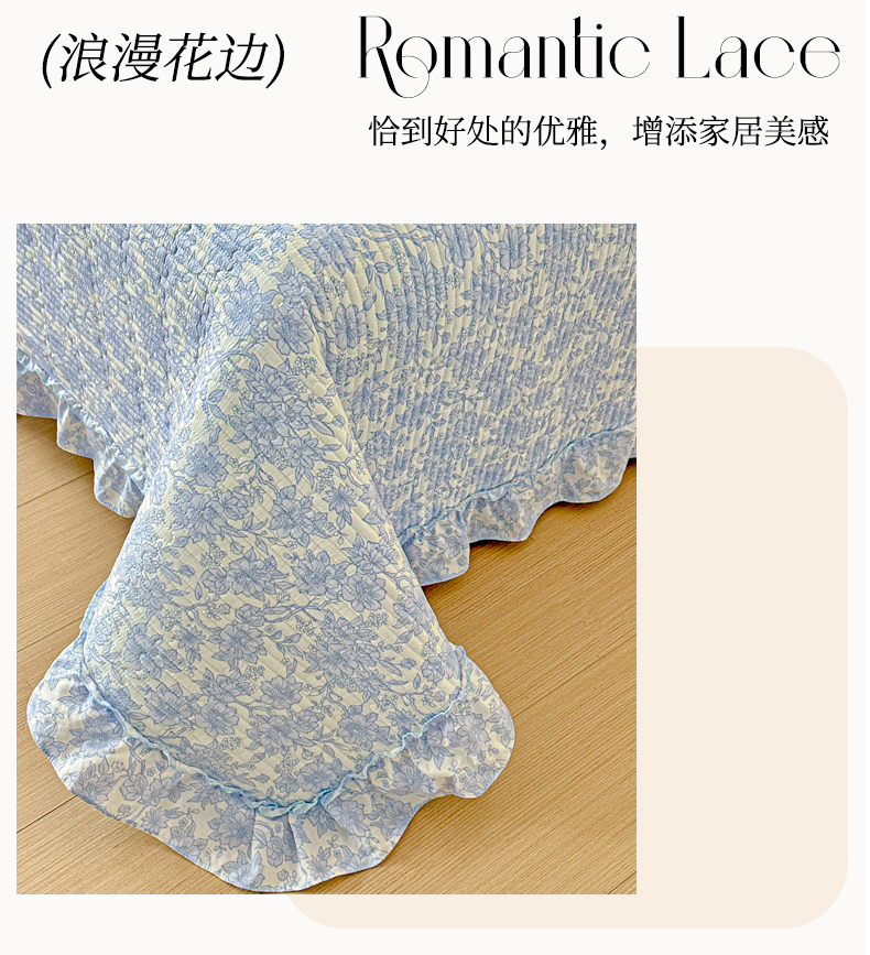 当前位置: 91家纺网 > 商品网购 > 床上用品 > 床盖 > 恒尚居 2026新款云感皱皱纱床盖花边床单双层纱床盖三件套-四季款 花边款-清新蓝