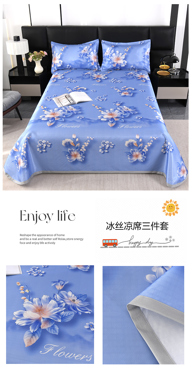 商品名称:绒品壹家家纺 2026新款立体数码印花凉感丝冰丝席软凉席席子三件套 花影