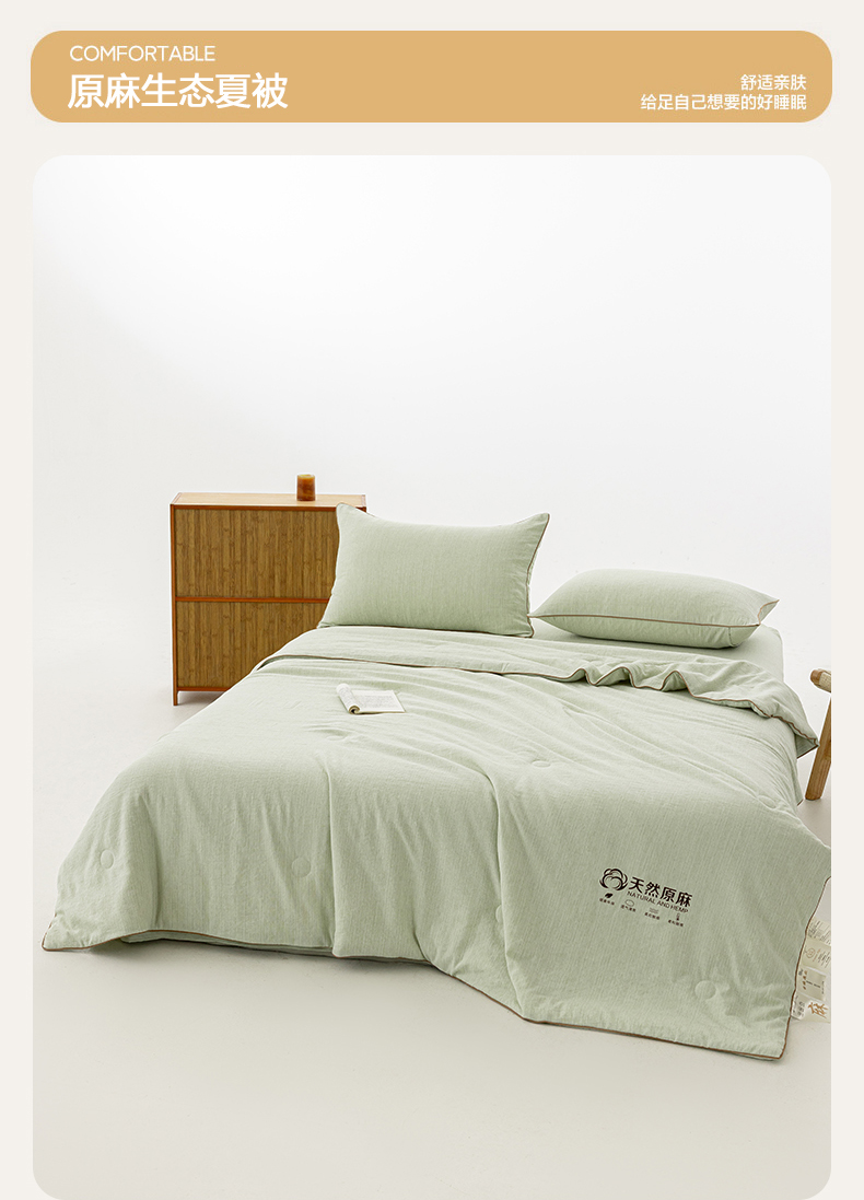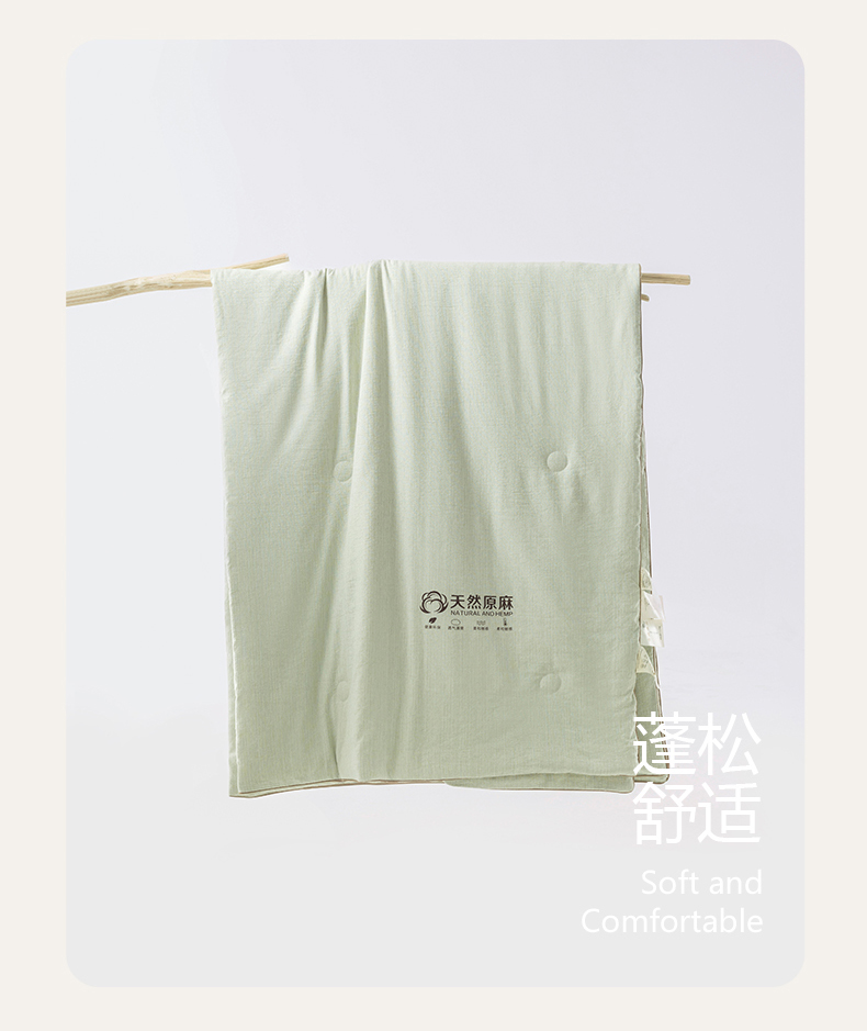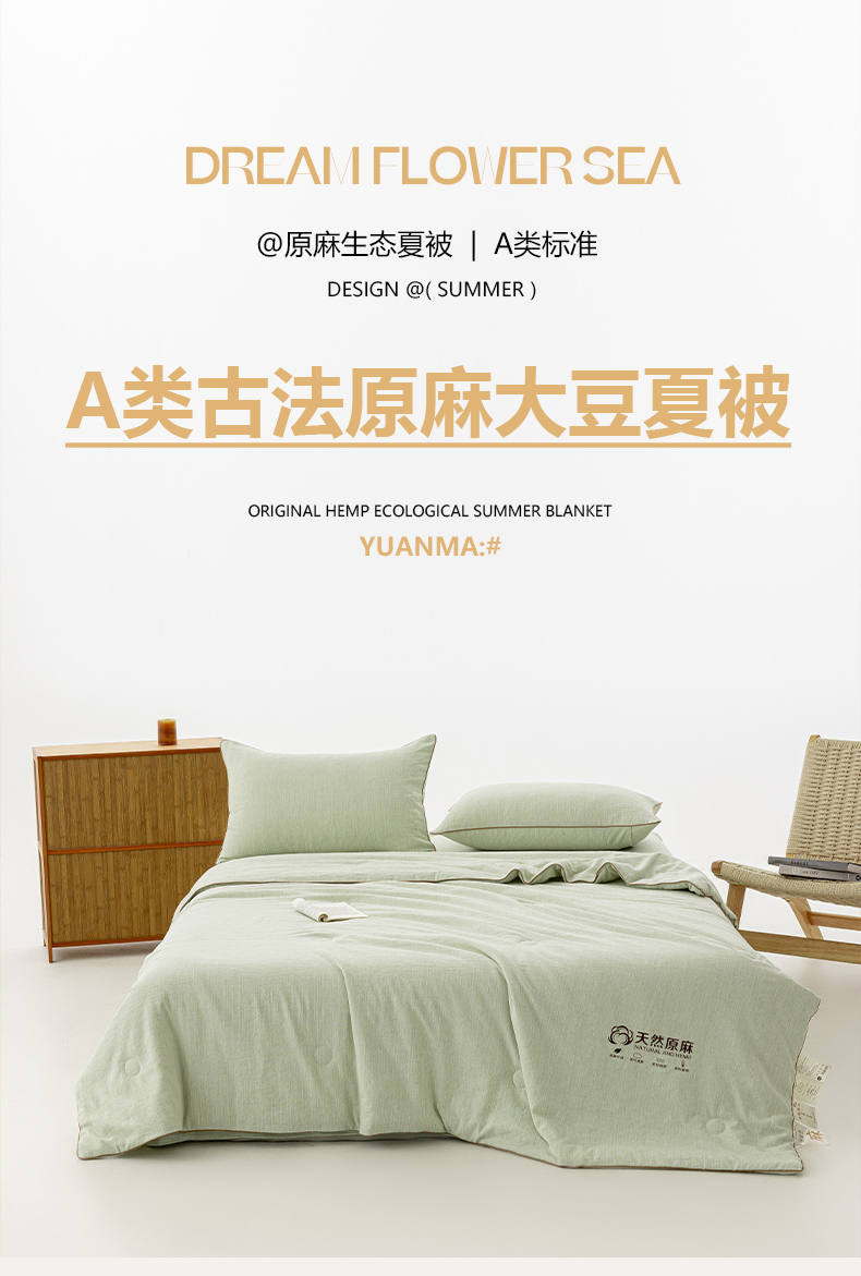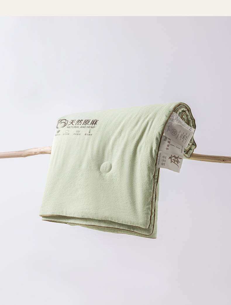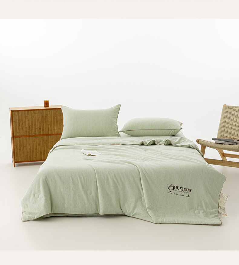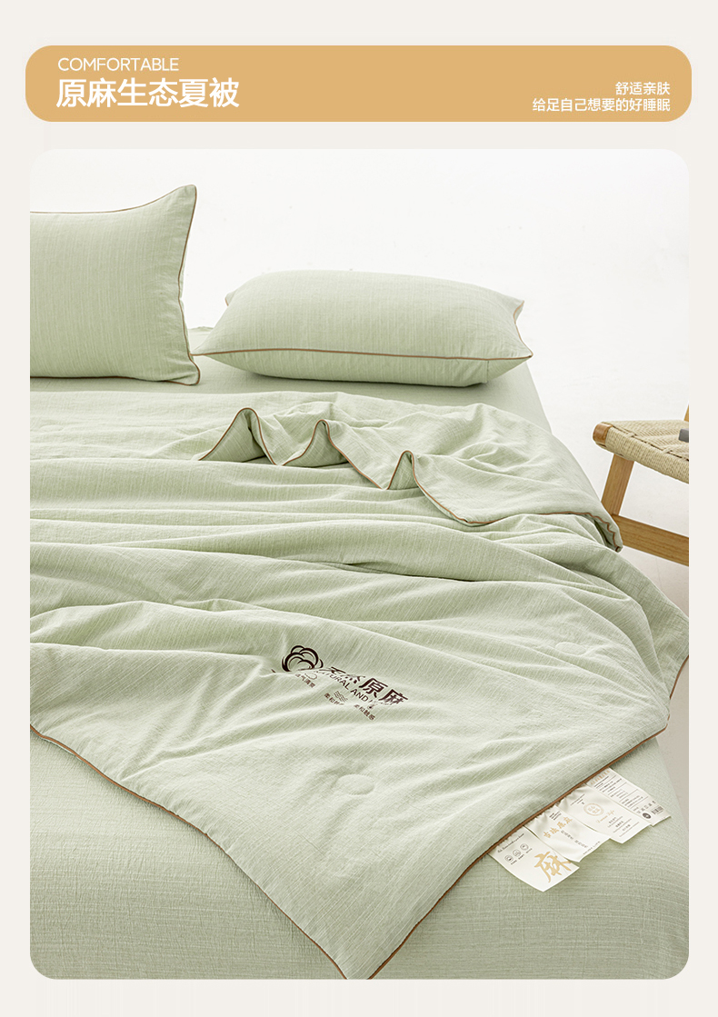 商品名称:迪梵家纺 2026春夏新款A类古法天然原麻生态夏被空调被棉麻夏凉被子被芯 天然原麻-豆绿