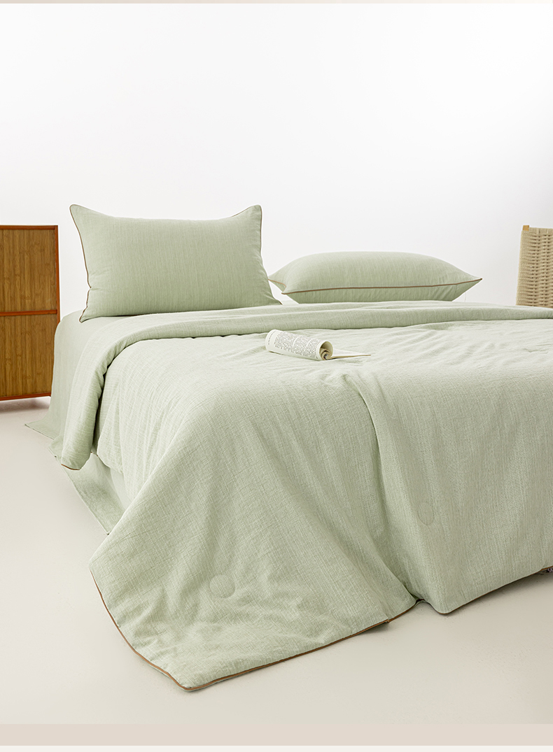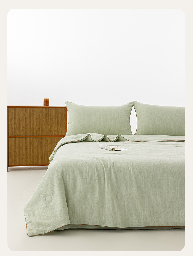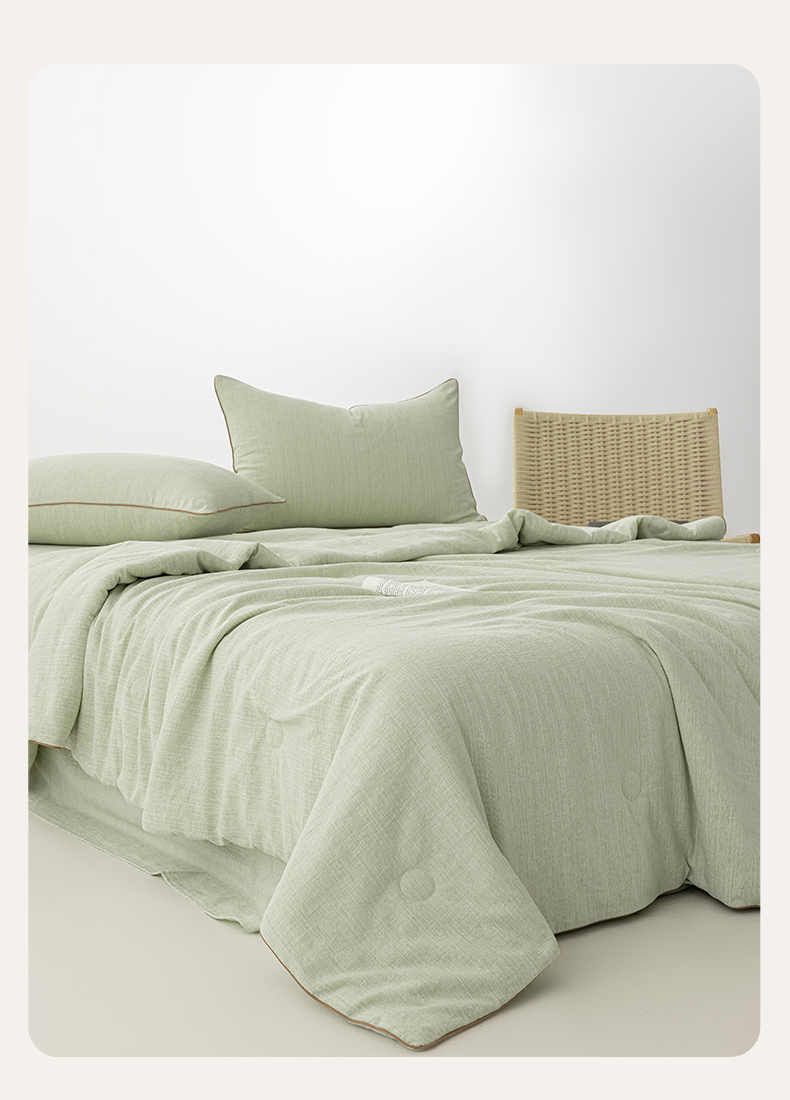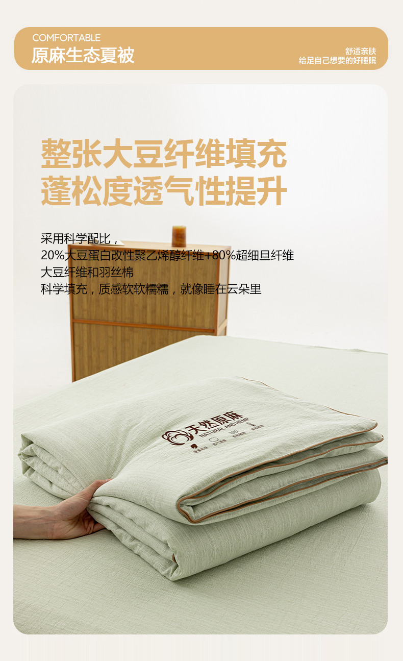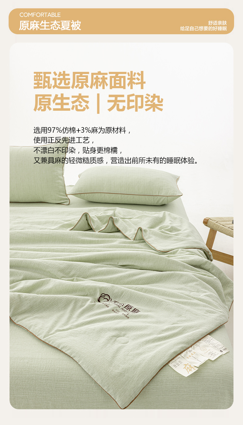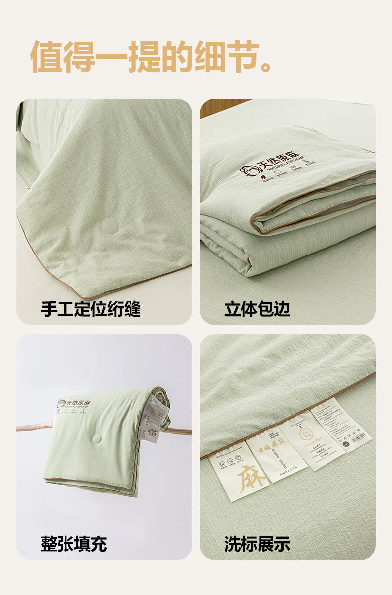 商品名称:迪梵家纺 2026春夏新款A类古法天然原麻生态夏被空调被棉麻夏凉被子被芯 天然原麻-豆绿