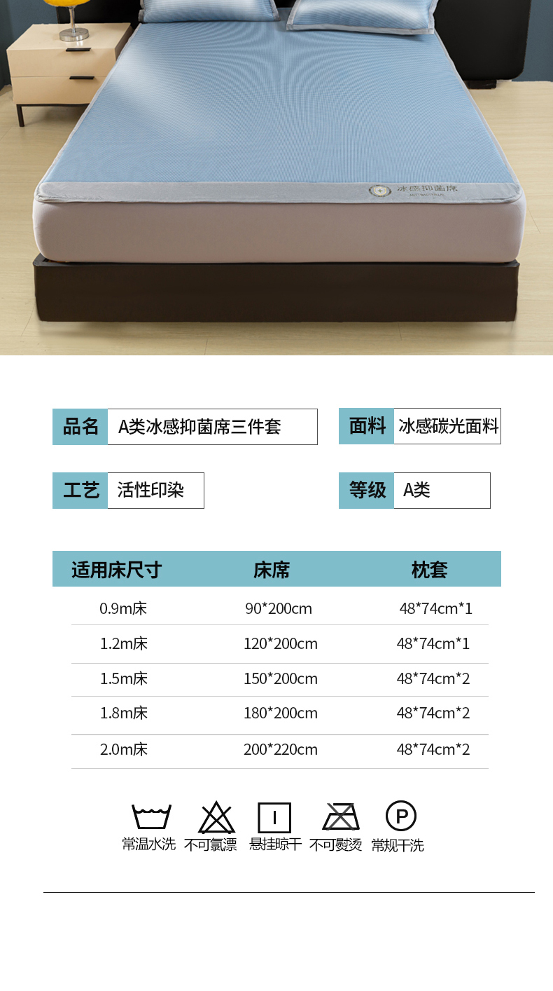 (总)乐窝家纺仓储 2026新款A类抗菌碳光冰丝席冰藤席床笠款加厚三明治复合凉席三件套学生宿舍两件套,浅粉-床席款,水绿-床席款,天蓝-床席款,银灰-床席款,浅粉-床笠款,水绿-床笠款,天蓝-床笠款,银灰-床笠款