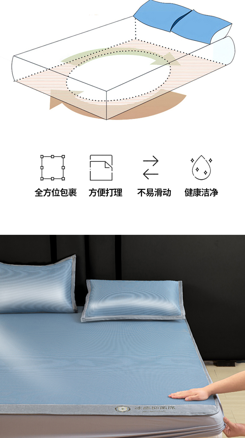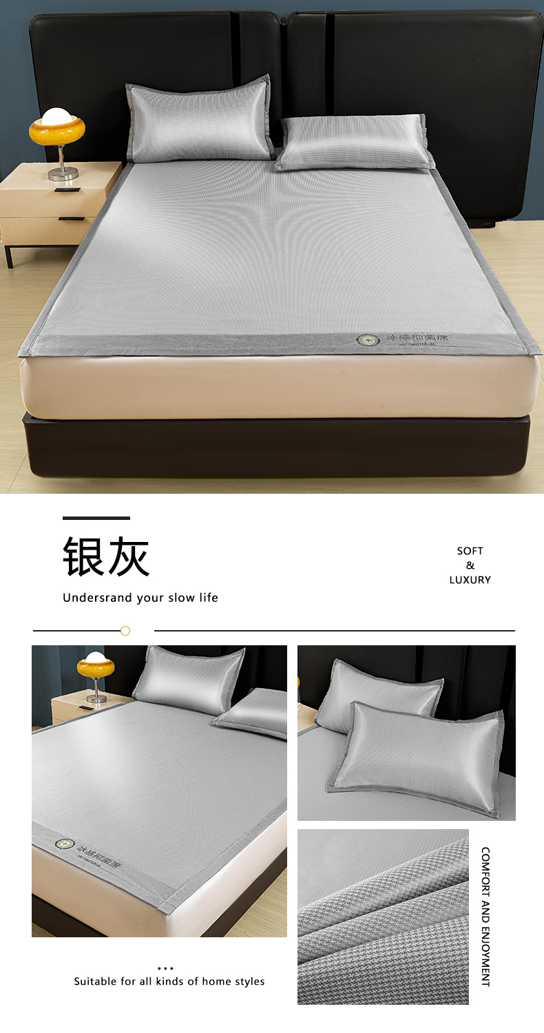 • 91家纺网 家纺一手货源 找家纺 (总)乐窝家纺仓储 2026新款A类抗菌碳光冰丝席冰藤席床笠款加厚三明治复合凉席三件套学生宿舍两件套,浅粉-床席款,水绿-床席款,天蓝-床席款,银灰-床席款,浅粉-床笠款,水绿-床笠款,天蓝-床笠款,银灰-床笠款