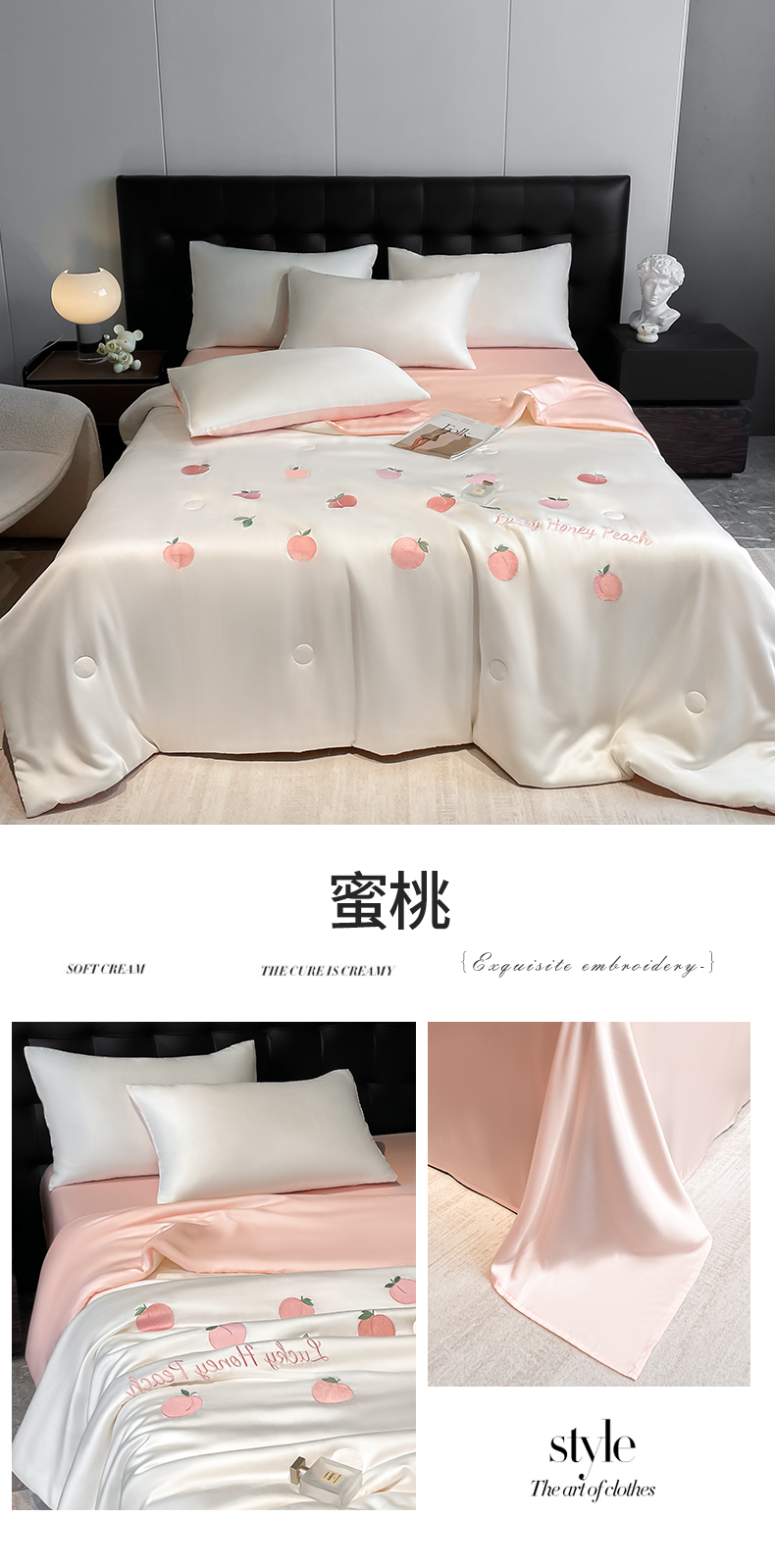 当前位置: 91家纺网 > 商品网购 > 床品套件 > 四件套 > 其它四件套 > 美澳家纺 2026新款凉感水洗冰丝真丝刺绣双拼单夏被三件套四件套 蜜桔-奶黄