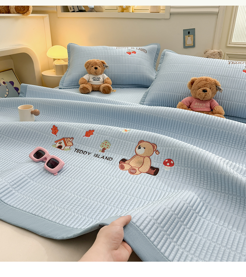 当前位置: 91家纺网 > 商品网购 > 床上用品 > 凉席 > 其他凉席 > 耐思家纺 2026新款A类高端刺绣pe乙纶冰豆豆席爱兰系列正版授权(提供买家秀)床席款 蓝屿泰迪-蓝