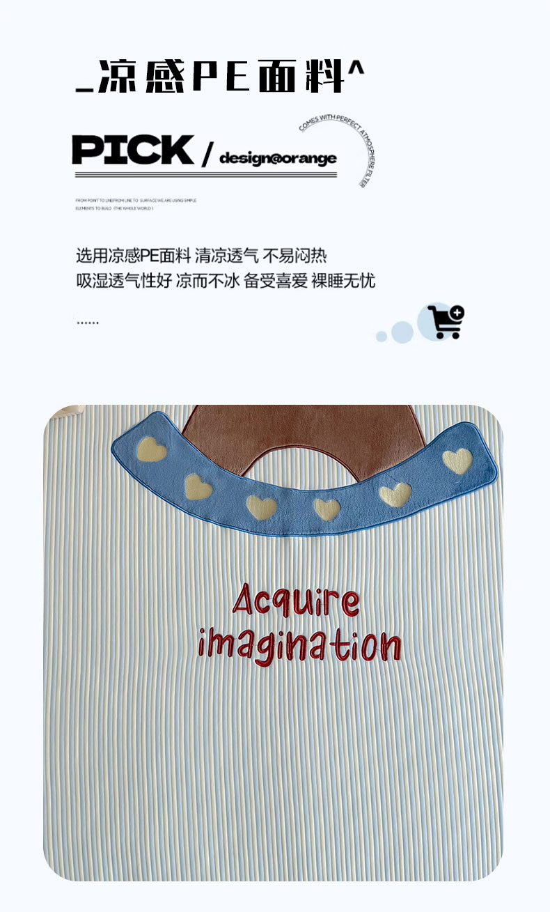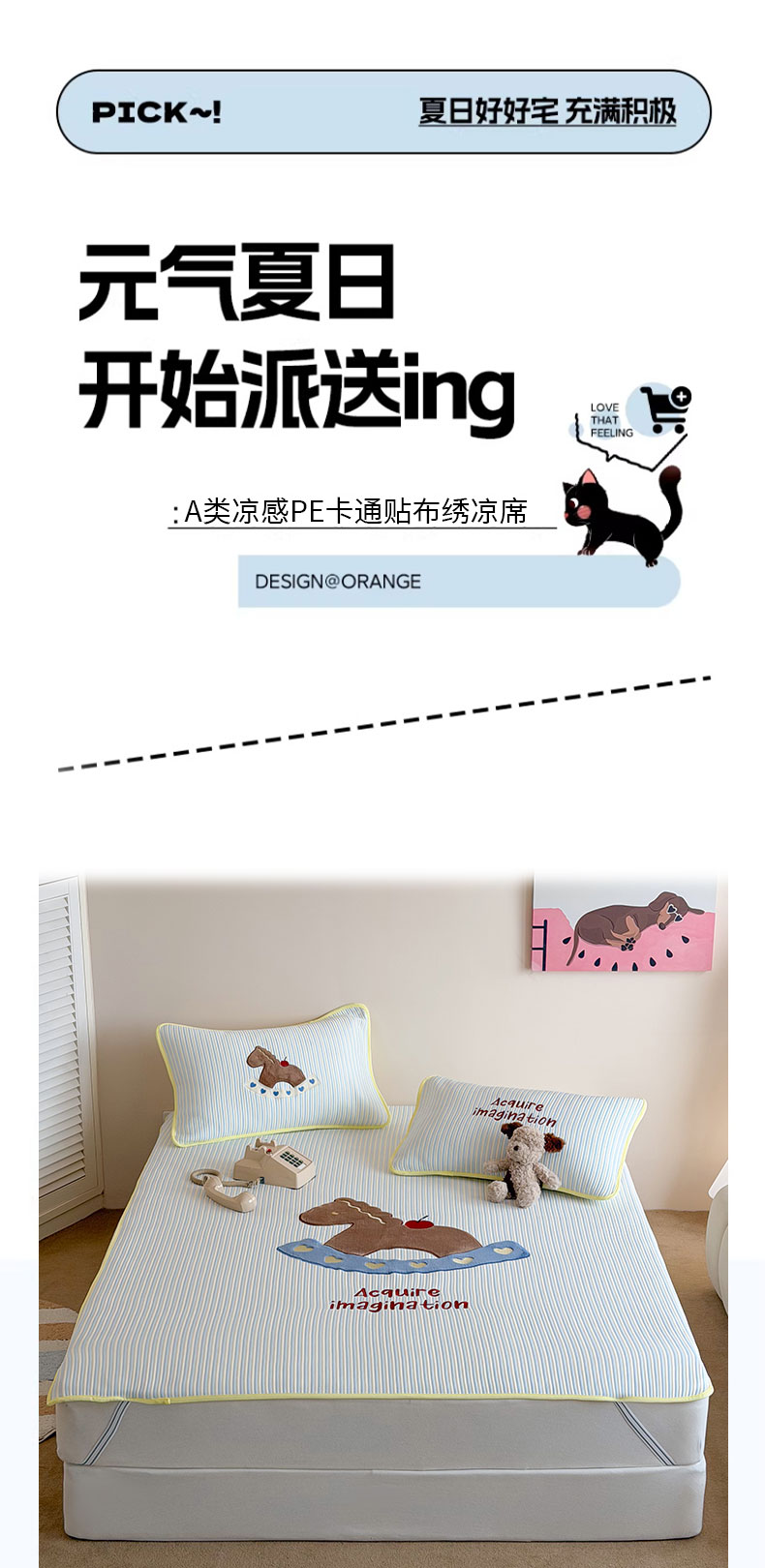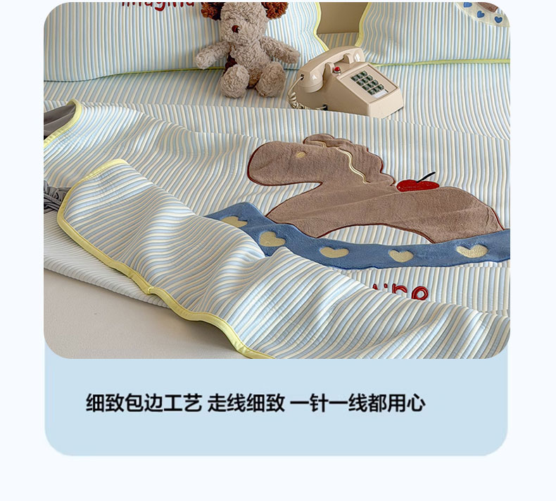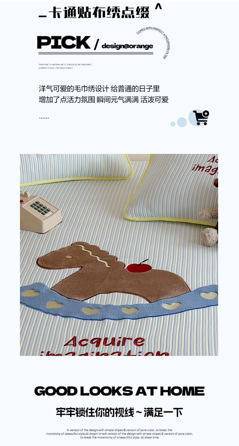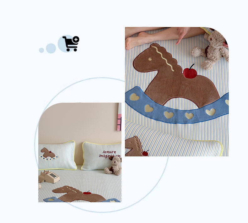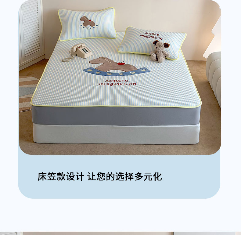 • 91家纺网 家纺一手货源 找家纺 桃子家居 2026新款A类PE凉感卡通贴布绣高端工艺空调软席床席床笠凉席三件套 PE贴布绣-爱心木马