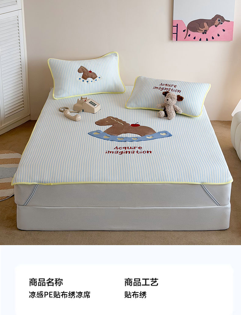 桃子家居 2026新款A类PE凉感卡通贴布绣高端工艺空调软席床席床笠凉席三件套 PE贴布绣-爱心木马