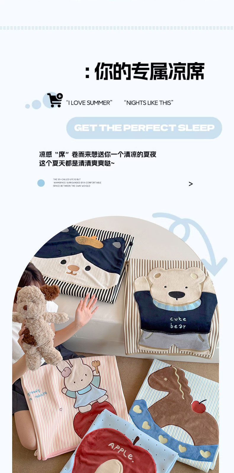 • 91家纺网 家纺一手货源 找家纺 (总)桃子家居 2026新款A类卡通小清新奶乎乎高品质牛奶丝软糯针织棉嵌绳工艺夏被系列,针织嵌绳-薄荷奶猫,针织嵌绳-彩塘猫咪,针织嵌绳-乖乖狗,针织嵌绳-莓果狗,针织嵌绳-奶雾小象,针织嵌绳-奶杏甜点猫,针织嵌绳-奶盐格粉纹猫咪,针织嵌绳-奶盐蓝格纹猫咪,针织嵌绳-苹果猫,针织嵌绳-森系小马,针织嵌绳-甜梦碎花狗,针织嵌绳-晚安兔兔,针织嵌绳-星梦猫咪,针织嵌绳-元气小狗,组合图