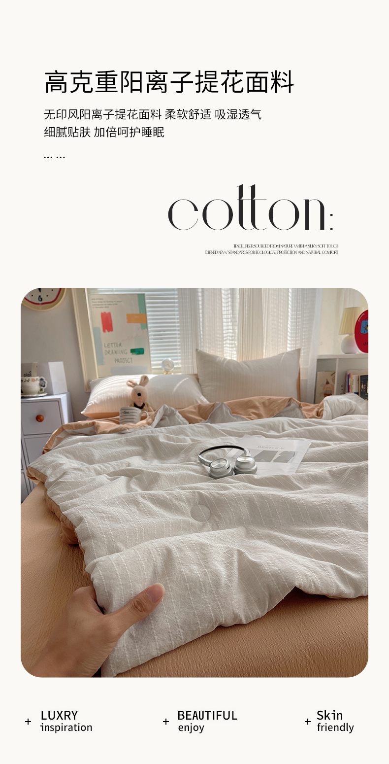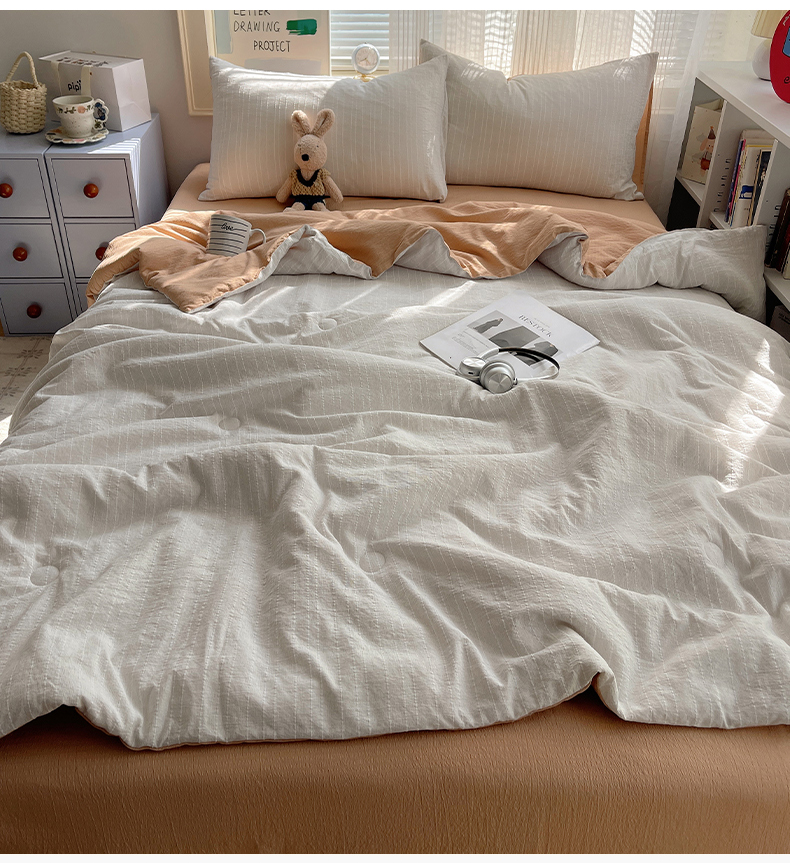 当前位置: 91家纺网 > 商品网购 > 床品套件 > 四件套 > 夏被四件套 > 栩裕纺织 2026新款高克重无印风阳离子提花单夏被-夏被三件套四件套 夏被-白+咖