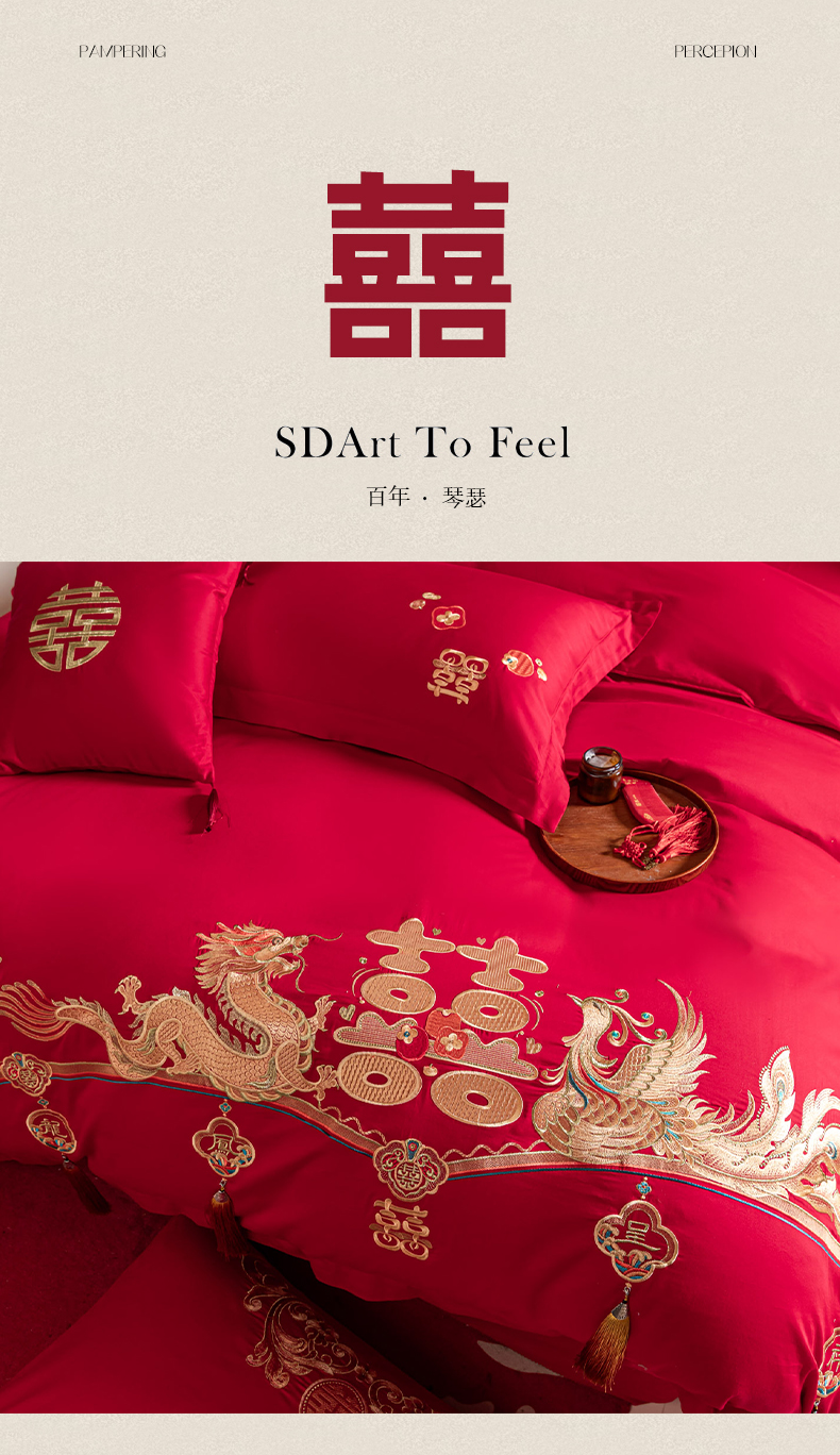 当前位置: 91家纺网 > 商品网购 > 床品套件 > 四件套 > 婚庆四件套 > 东方合美(原:皇家传奇) 2026新款纯棉长绒棉刺绣婚庆四件套-龙凤系列 龙凤报喜