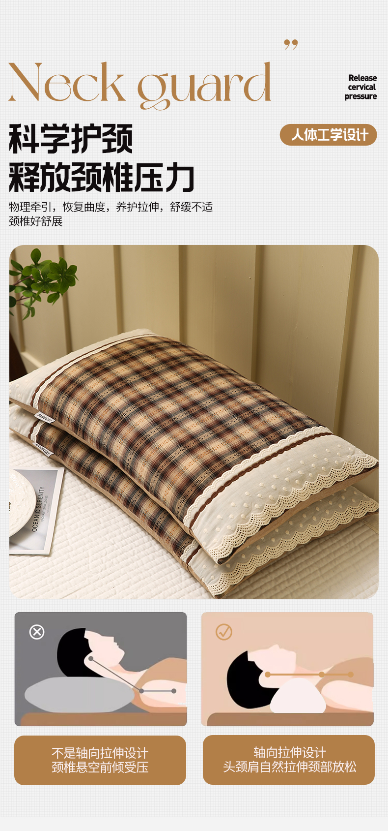 (总)梦叶草 2026新款低调生活简约灰白护颈枕头枕芯,组合图仅供参考不可下单,低调生活-咖色,低调生活-米色