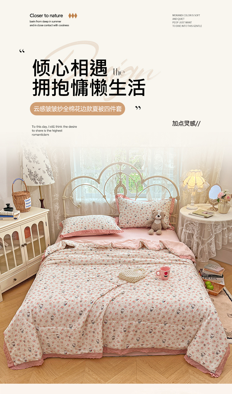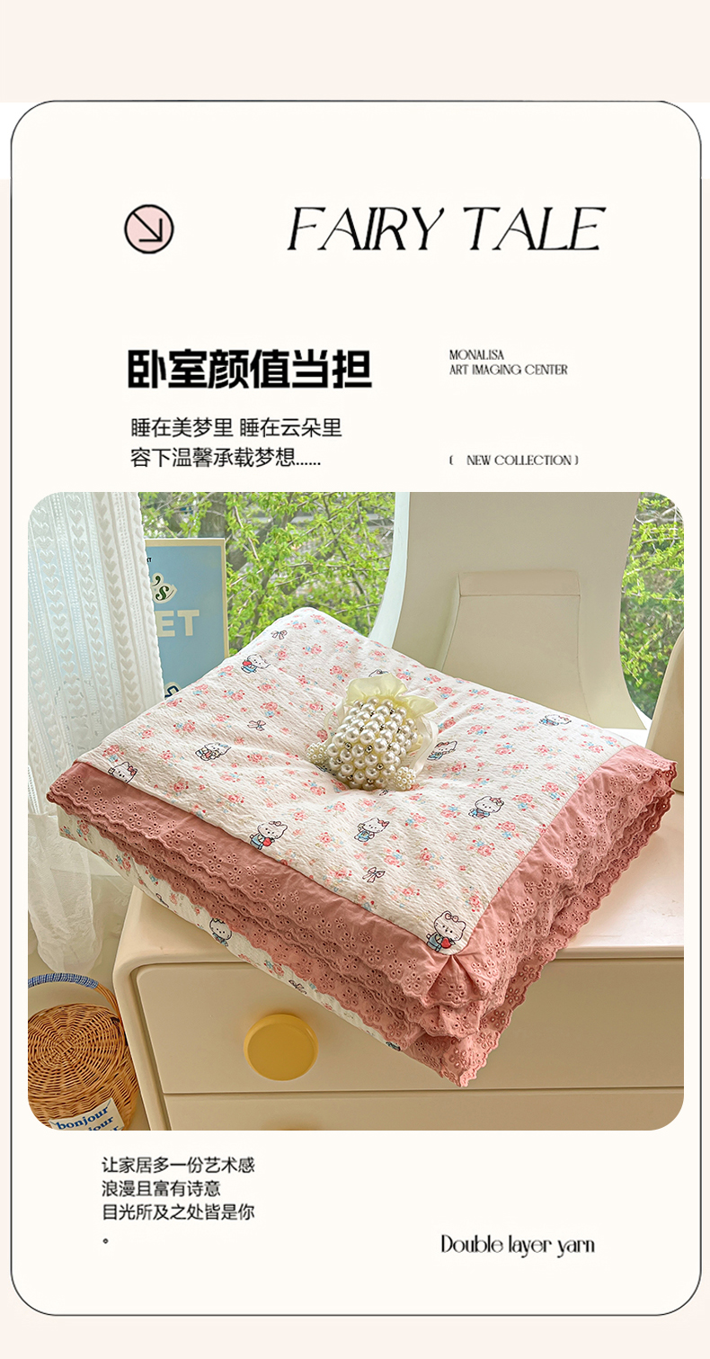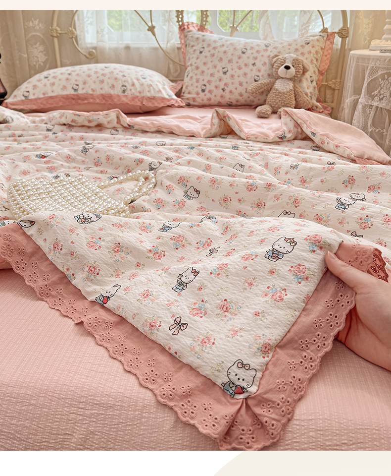 商品名称:优尚佳生活馆 2026新款云感皱皱纱全棉花边款夏被四件套 甜喵