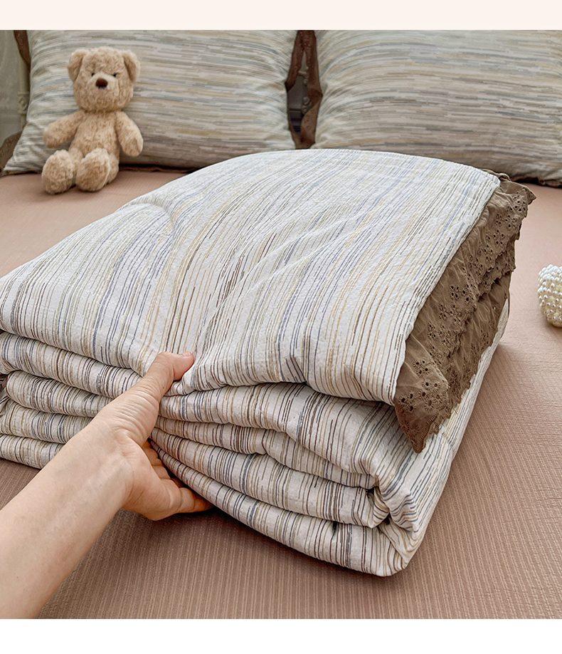 优佳优品 2026新款云感皱皱纱全棉花边款夏被四件套 暮纱