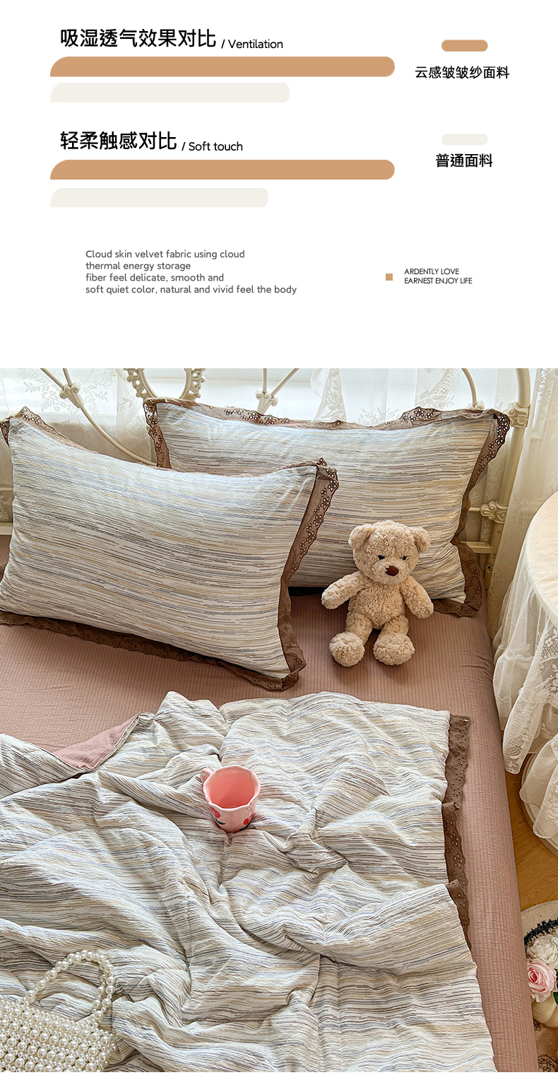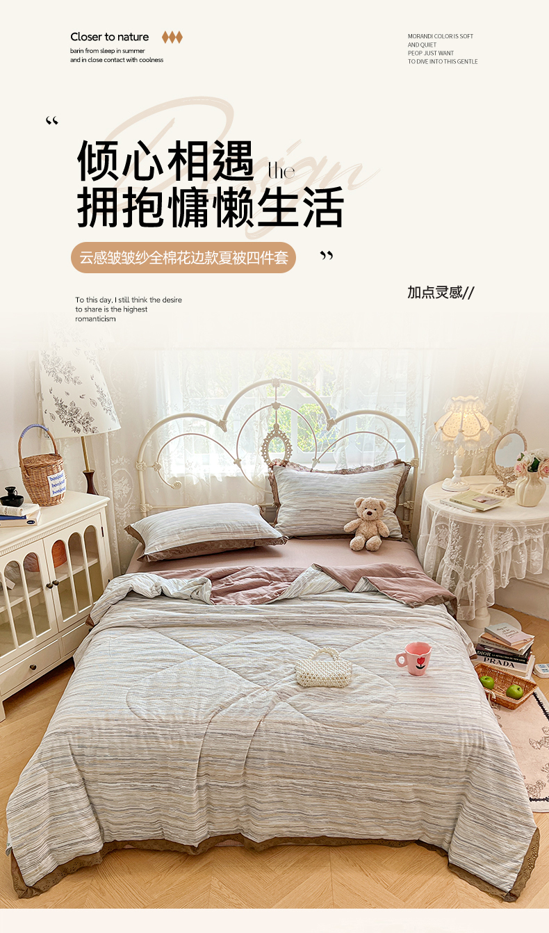 商品名称:优佳优品 2026新款云感皱皱纱全棉花边款夏被四件套 暮纱
