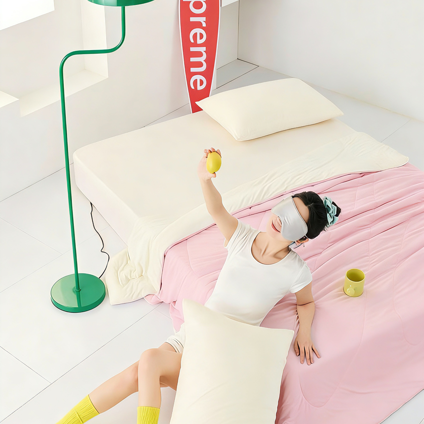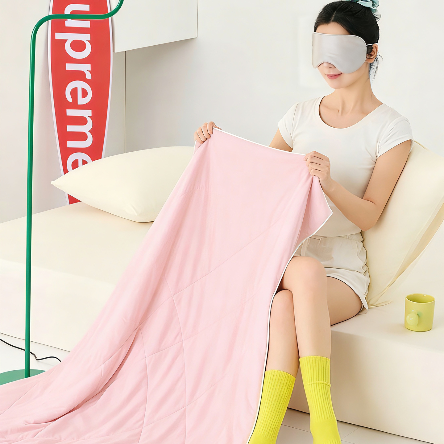 被子 > 夏被 > LADYCOCO可可家居 2026新款coolmate多巴胺色系凉感夏被系列2 樱云初霁(粉+白)