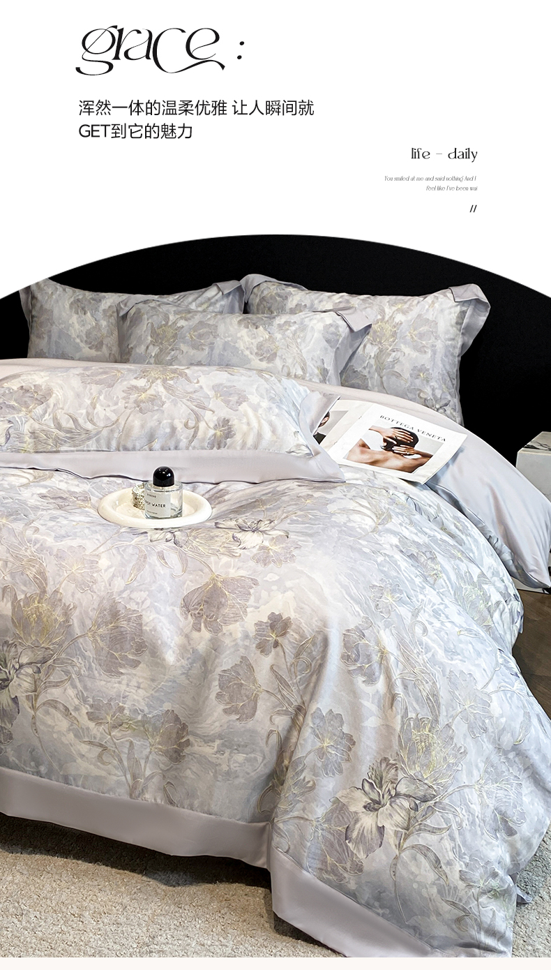 当前位置: 91家纺网 > 商品网购 > 床品套件 > 四件套 > 莱赛尔四件套 > 博纳家纺 2026新款数码印花天丝宽边四件套 塞纳