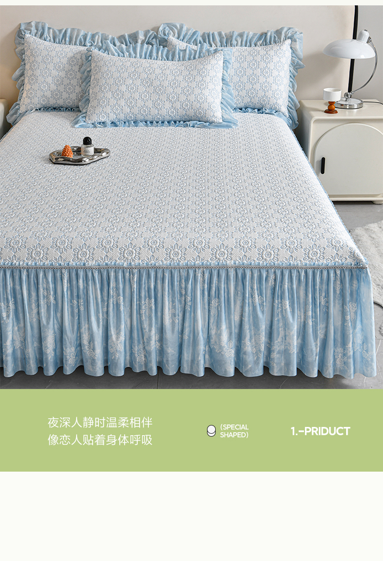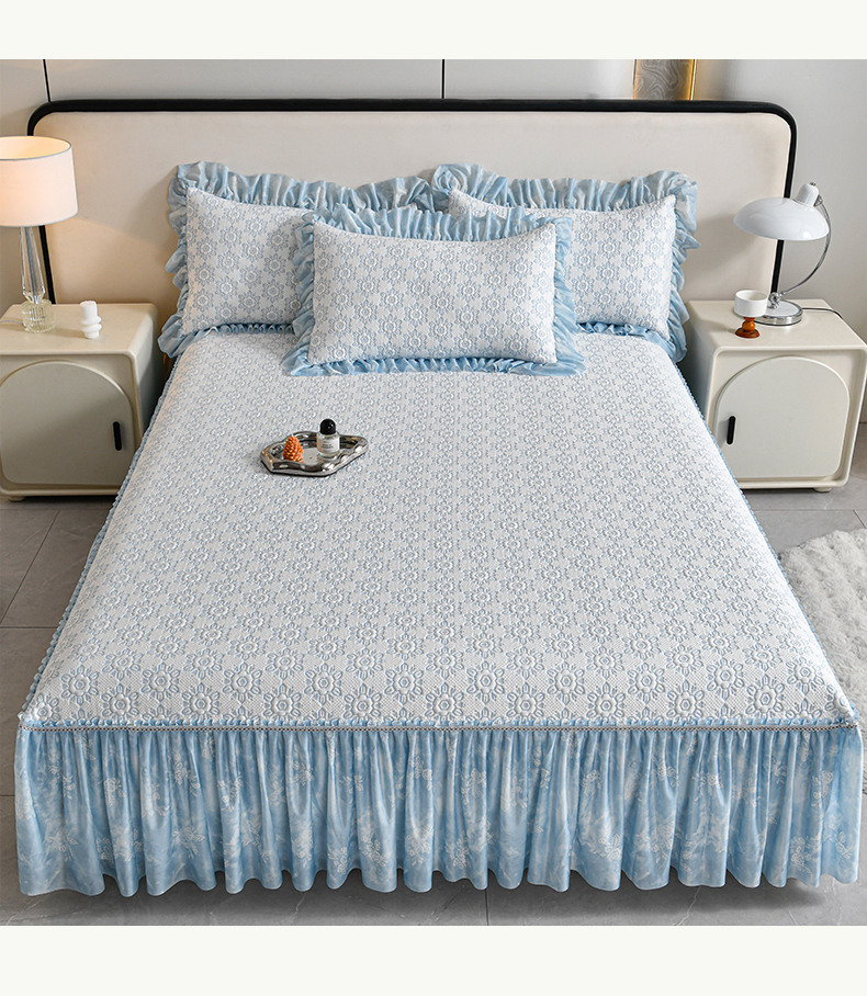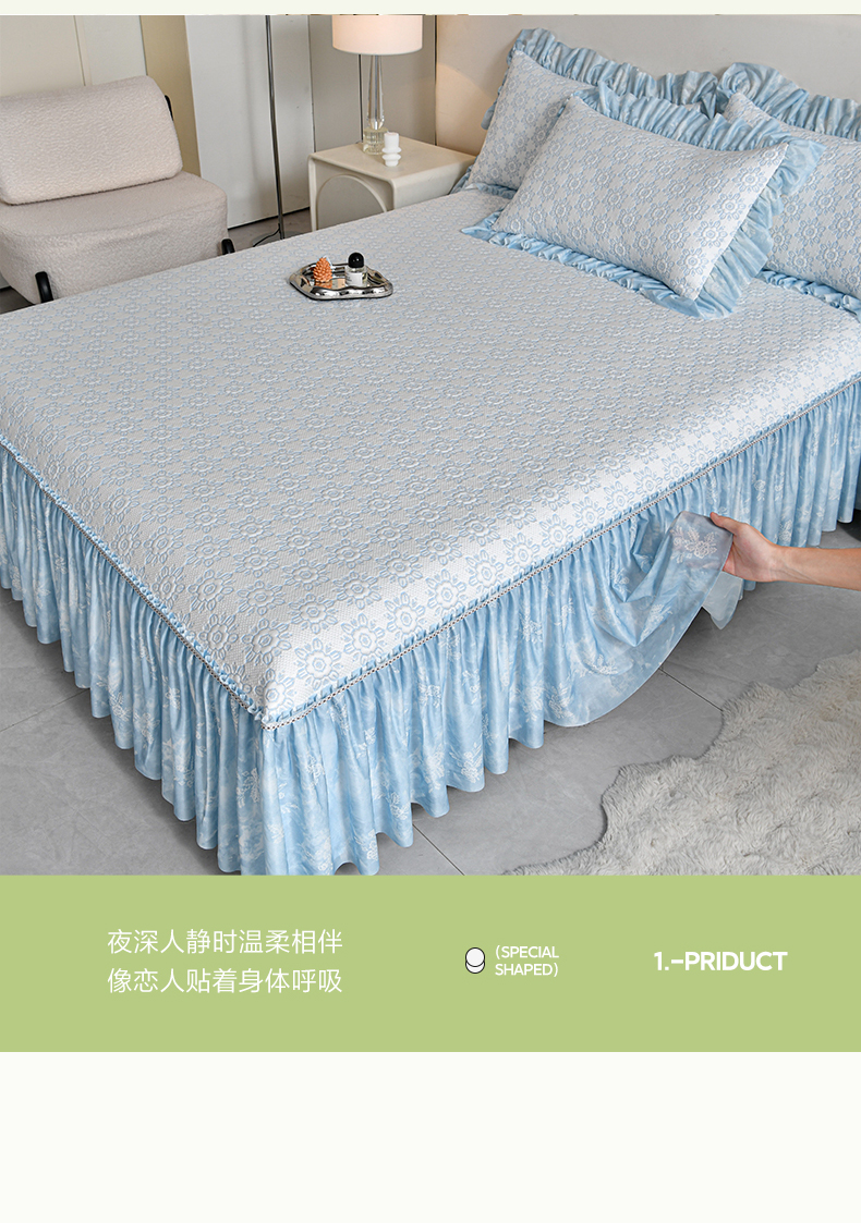 (总)畅畅家纺 2026新款花边3D立体冰豆豆冰丝凉席床裙款三件套,漫舞-粉,漫舞-灰,漫舞-蓝,漫舞-绿,幸运花朵-粉,幸运花朵-灰,幸运花朵-蓝,幸运花朵-绿
