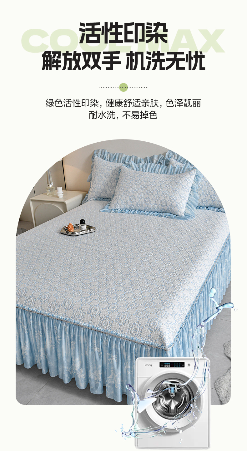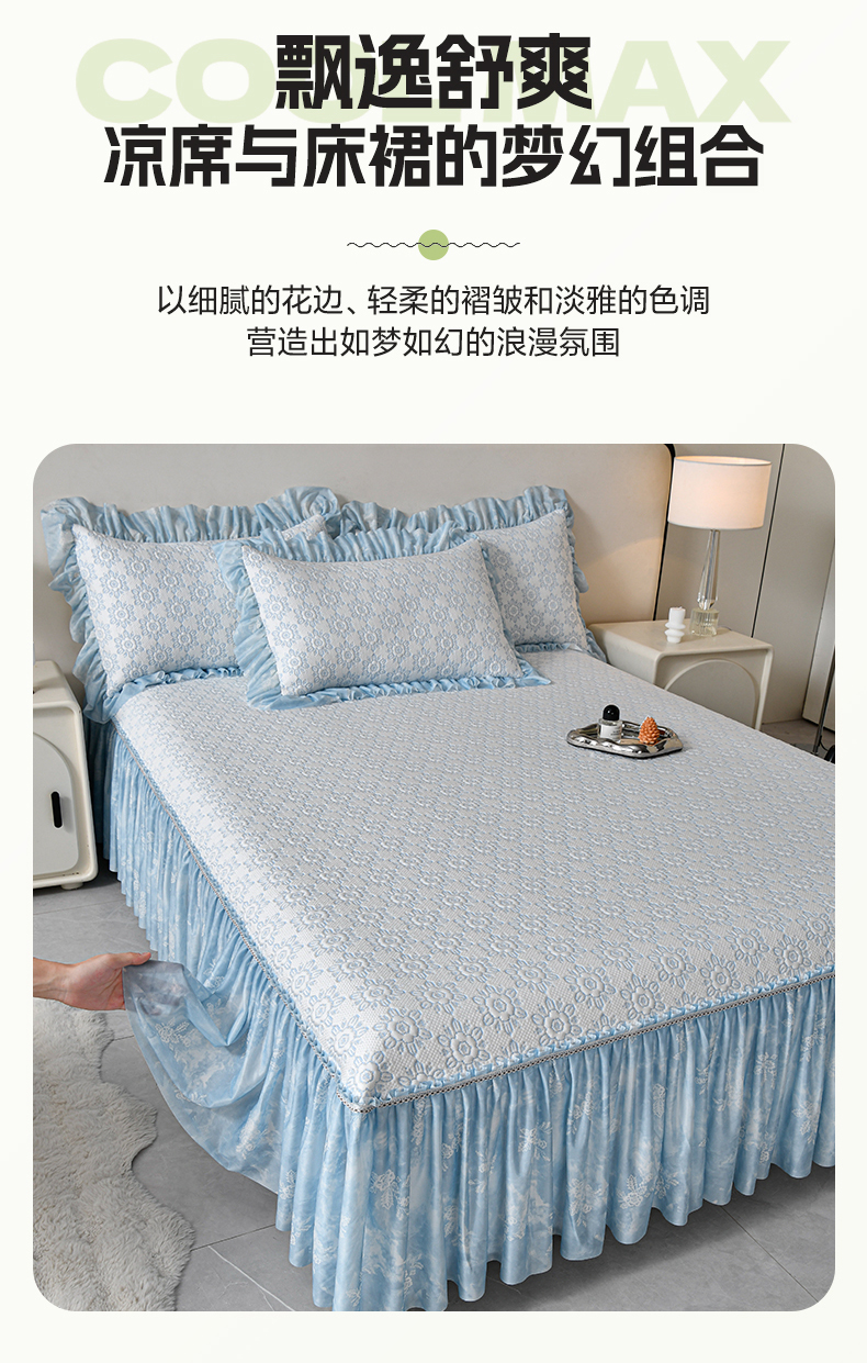 (总)畅畅家纺 2026新款夏季冰豆豆PE高分子凉感印花床裙款空调软凉席三件套,花韵-粉,花韵-灰,花韵-蓝,意境-粉,意境-灰,意境-蓝,意境-绿