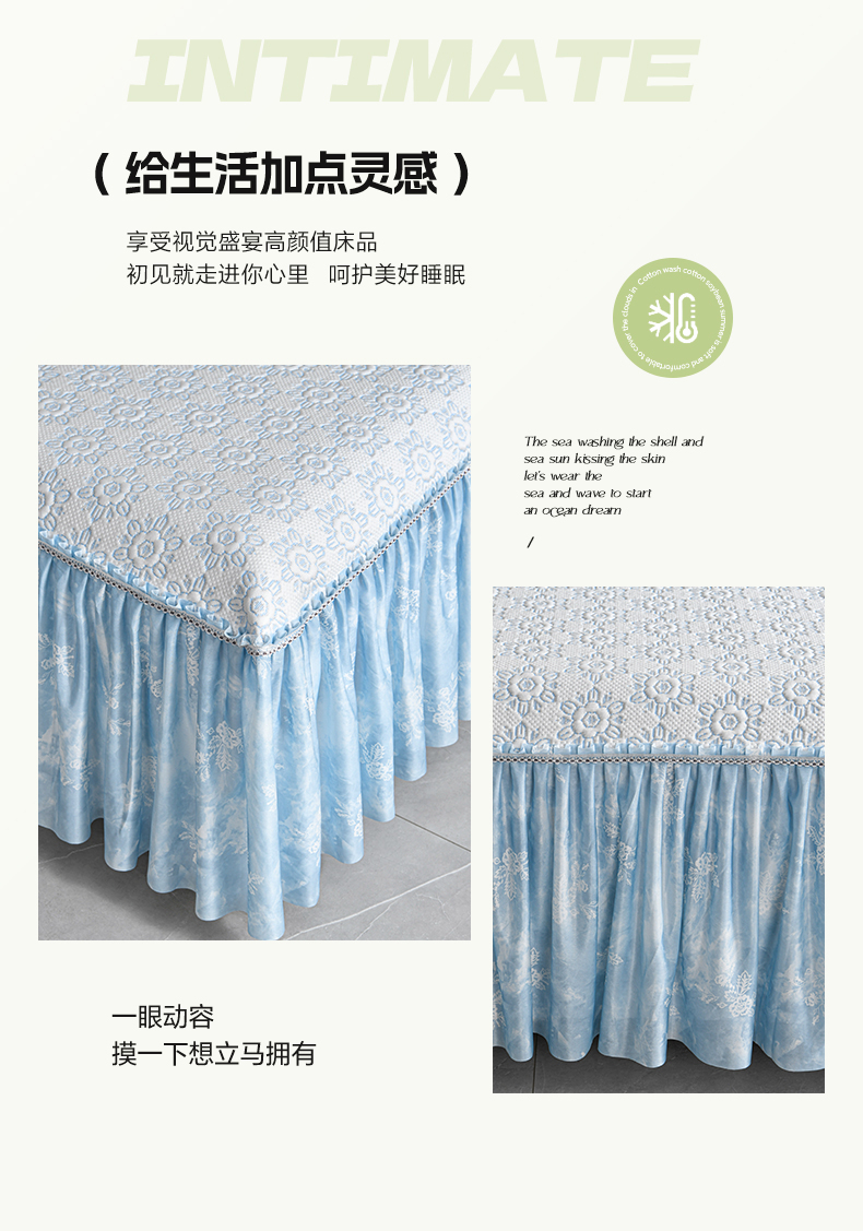 商品名称:畅畅家纺 2026新款夏季冰豆豆PE高分子凉感印花床裙款空调软凉席三件套 花韵-蓝