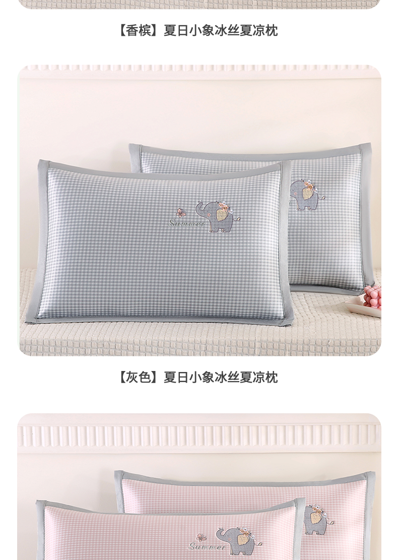 商品名称:小牛席业 2026新款夏日小象冰丝夏凉枕枕头枕芯 粉色