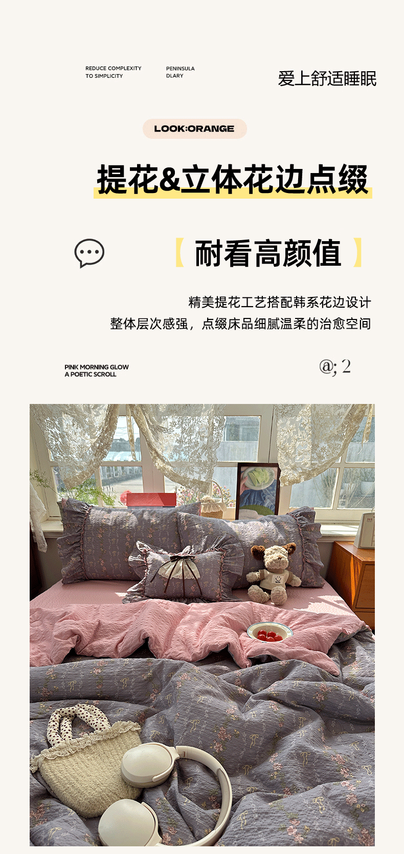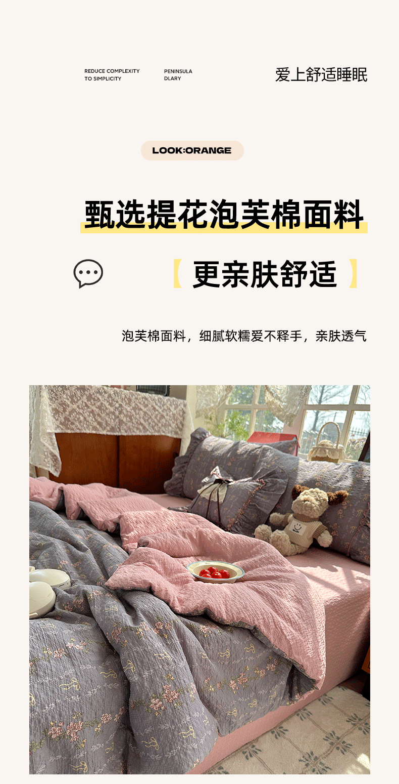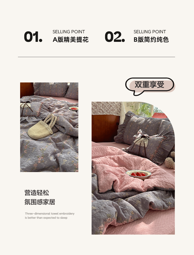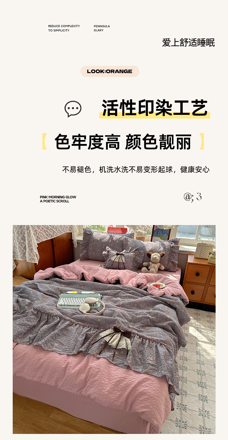 当前位置: 91家纺网 > 商品网购 > 床品套件 > 四件套 > 化纤普通四件套 > 栩裕纺织 2026新款提花泡芙棉立体花边简约韩系夏被-夏被三件套四件套 烟粉紫韵