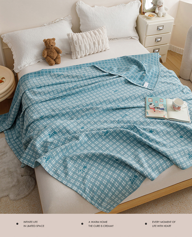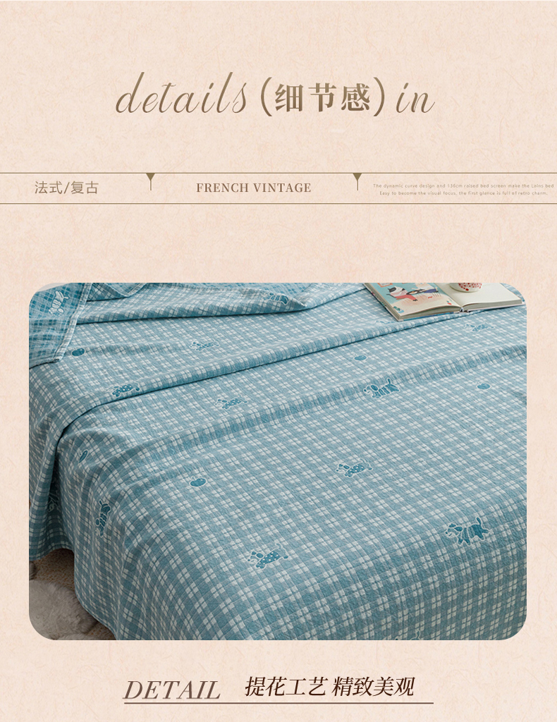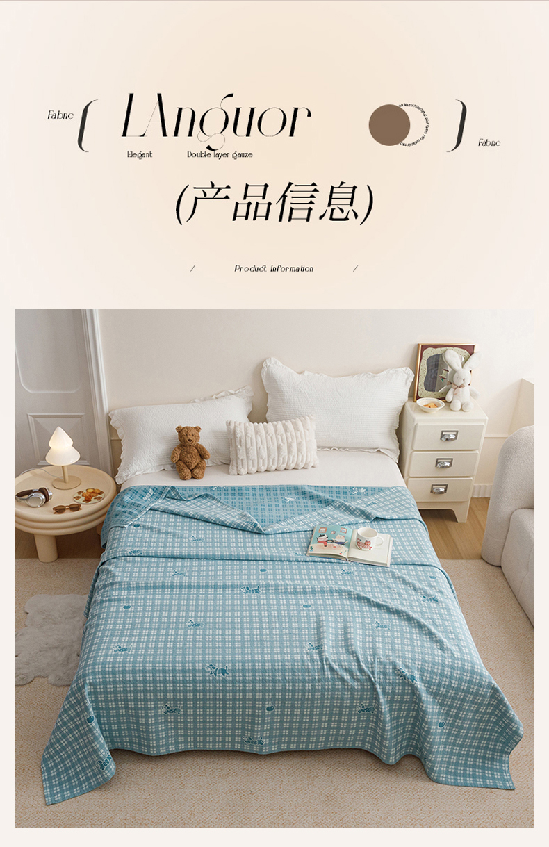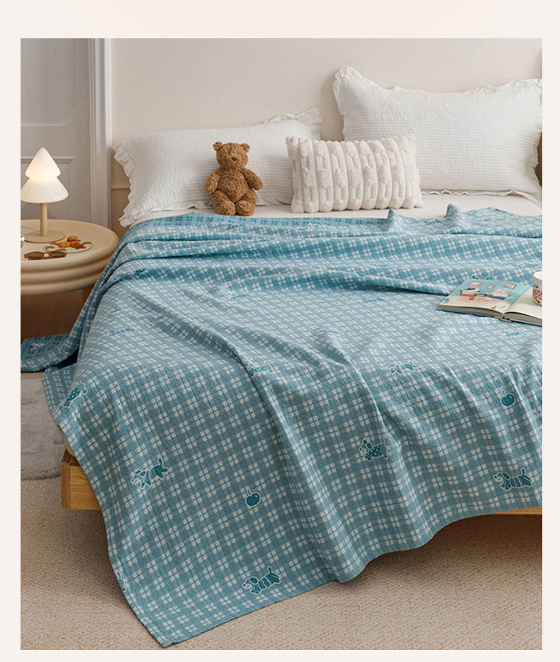 (总)悦然毛巾被 2026新款色织水洗棉盖毯安心棉床盖全棉纱布毛巾被夏被夏凉被空调被,组合图仅供展示不可下单,蓝格萌马,蓝格小狗,蓝格心语,蓝格星芒,蓝格熊语