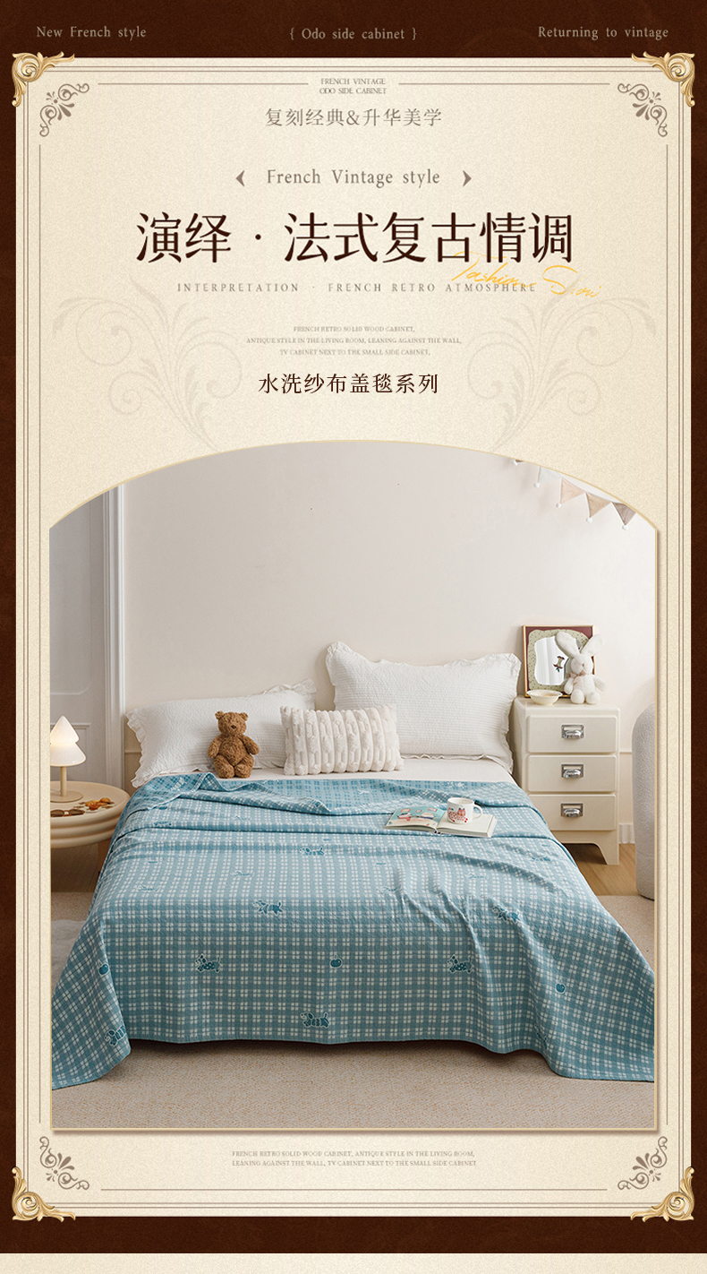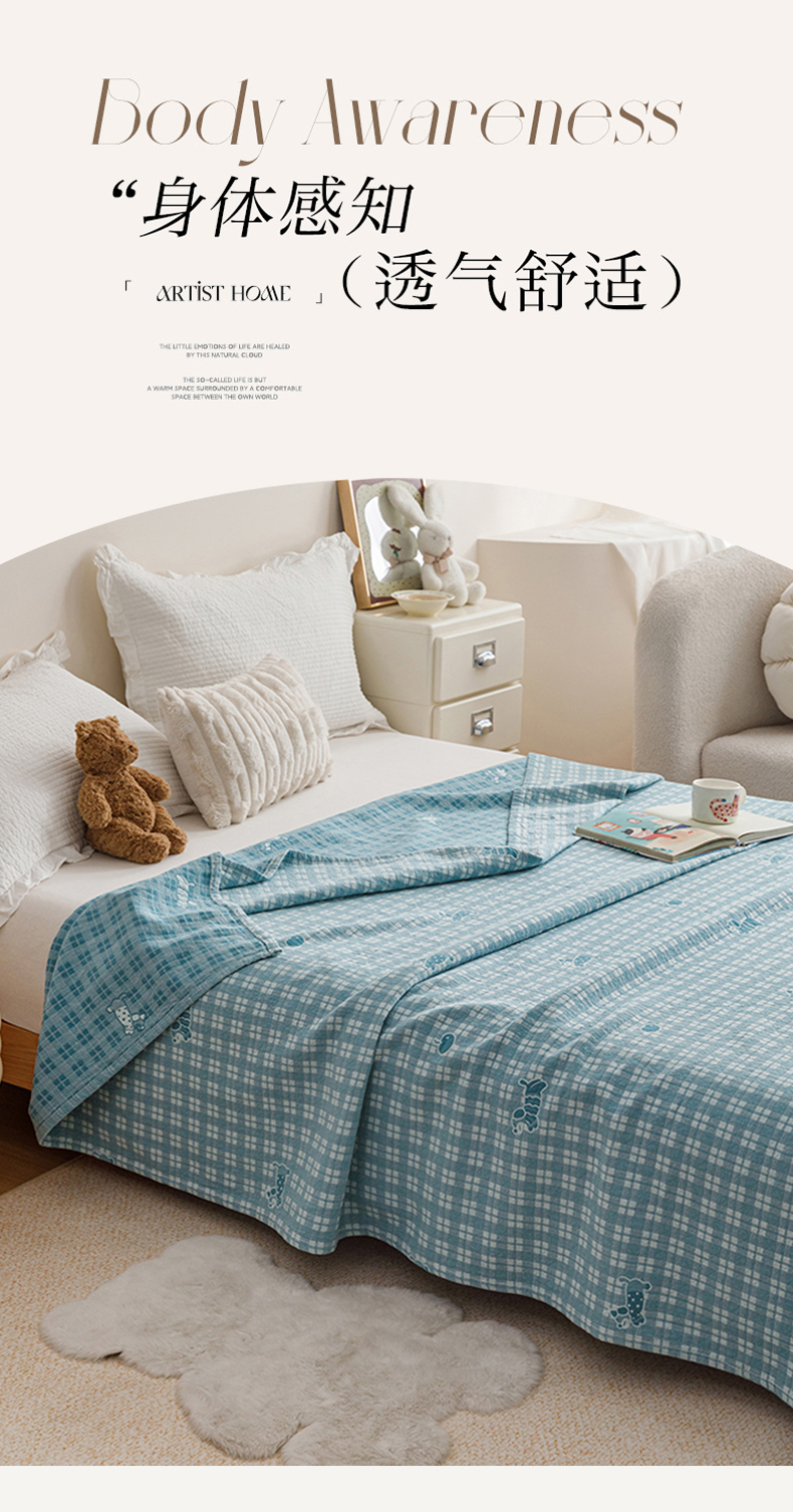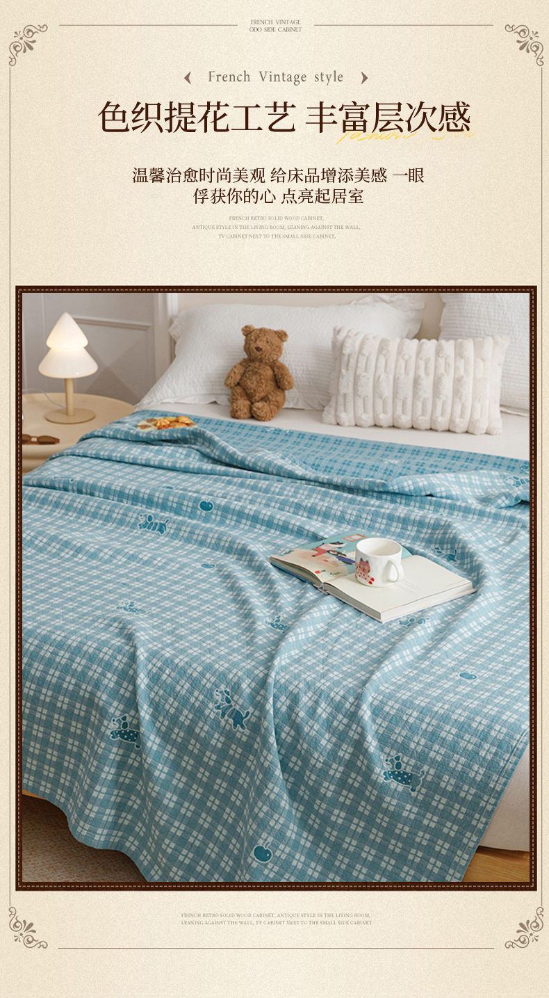 (总)悦然毛巾被 2026新款色织水洗棉盖毯安心棉床盖全棉纱布毛巾被夏被夏凉被空调被,组合图仅供展示不可下单,蓝格萌马,蓝格小狗,蓝格心语,蓝格星芒,蓝格熊语