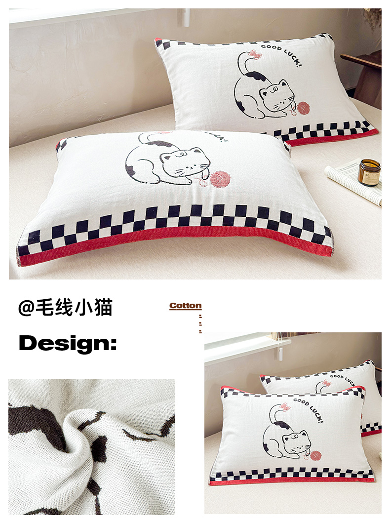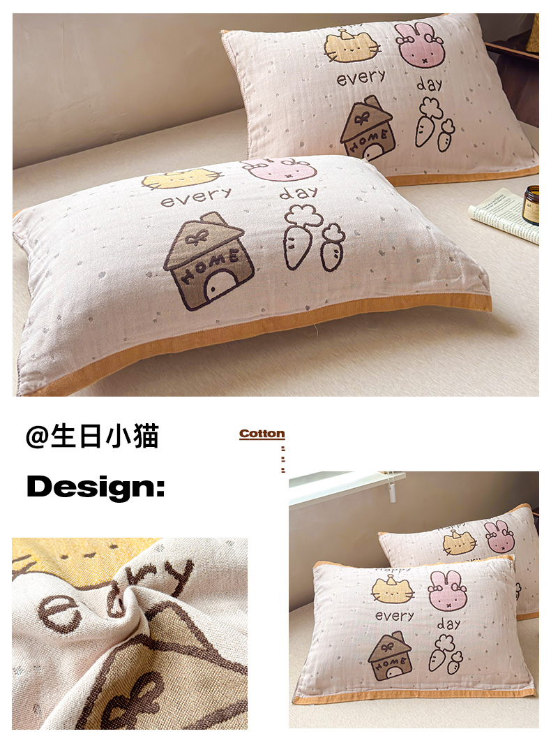 (总)乐家毛巾被(工厂自产自销) 2026新款全棉纯棉四层纱布枕巾,草莓面包,春日物语,纯色樱桃,耳机小熊,格纹草莓,黄色熊头,简约条纹,可颂面包,毛绒小兔,毛线小猫,蘑菇兔,南瓜派对,软糯云朵,三只小狗,森林小兔,生日小猫,甜心兔,顽皮熊猫,晚安小熊,五只小猫,心心猫咪,幸运猫