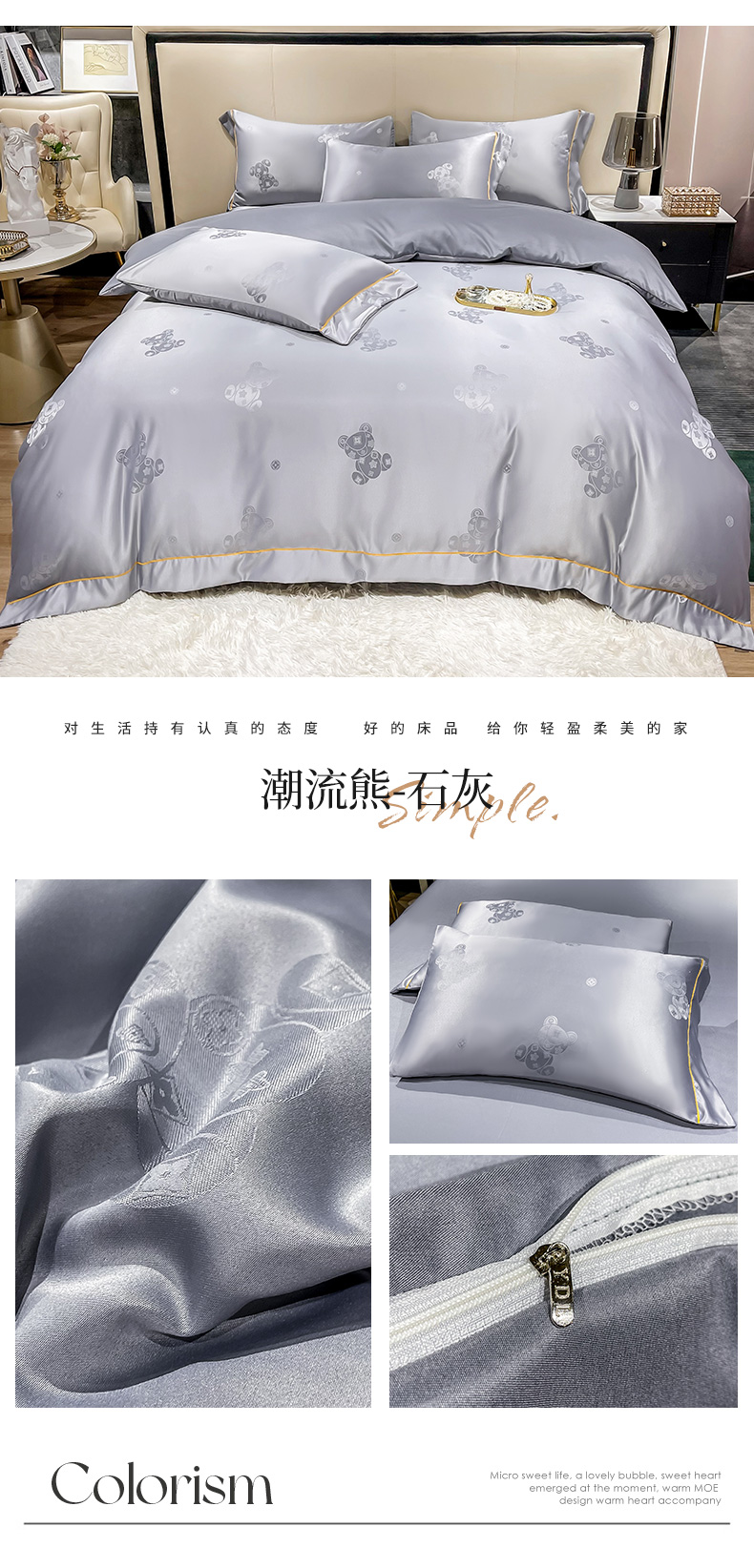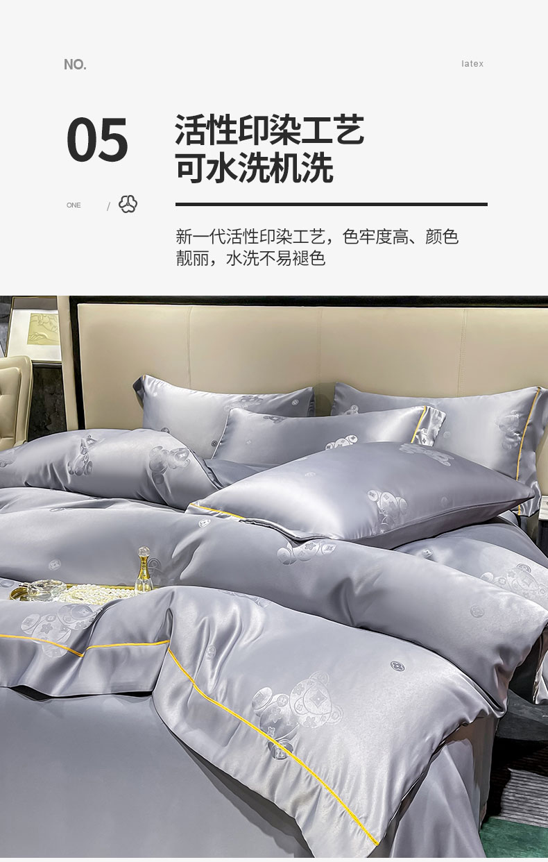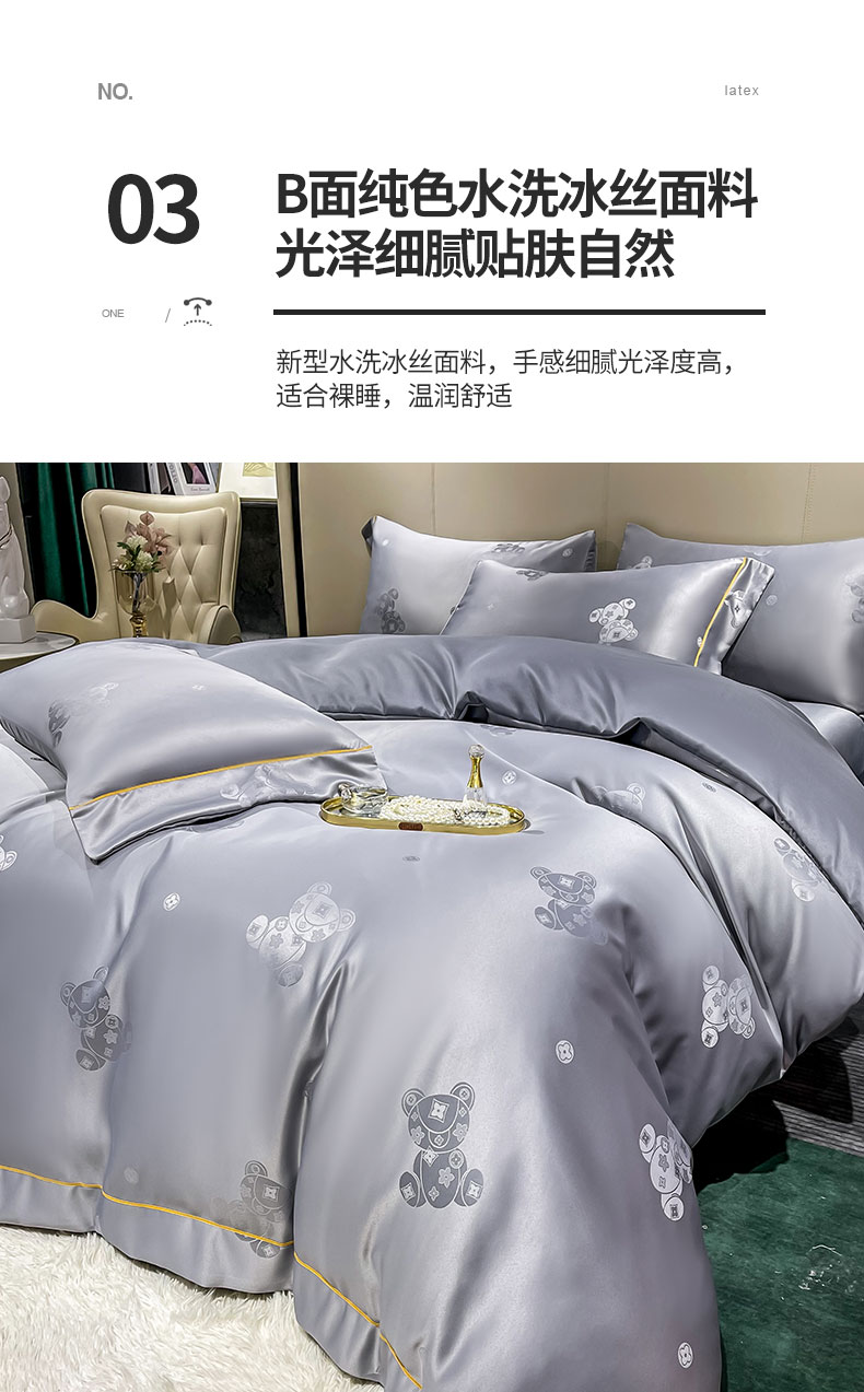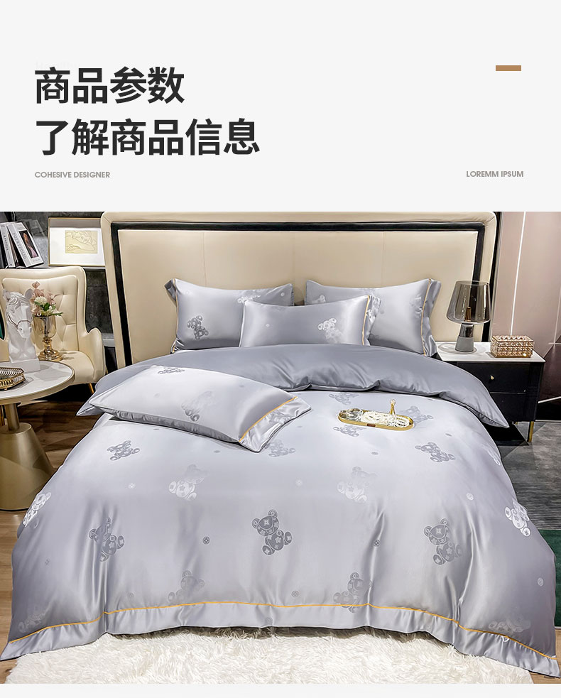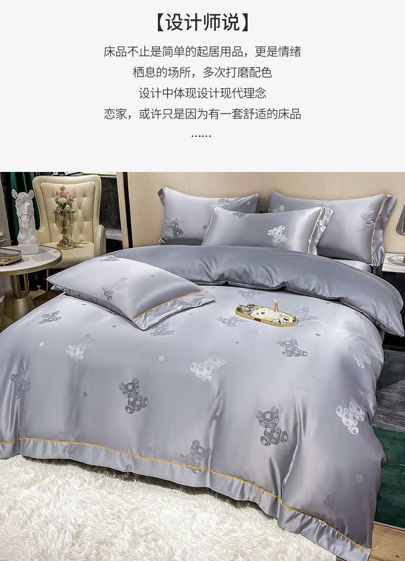 当前位置: 91家纺网 > 商品网购 > 床品套件 > 四件套 > 全棉普通四件套 > 经年 2026新款60S贡缎提花水洗真丝四件套 潮流熊-石灰