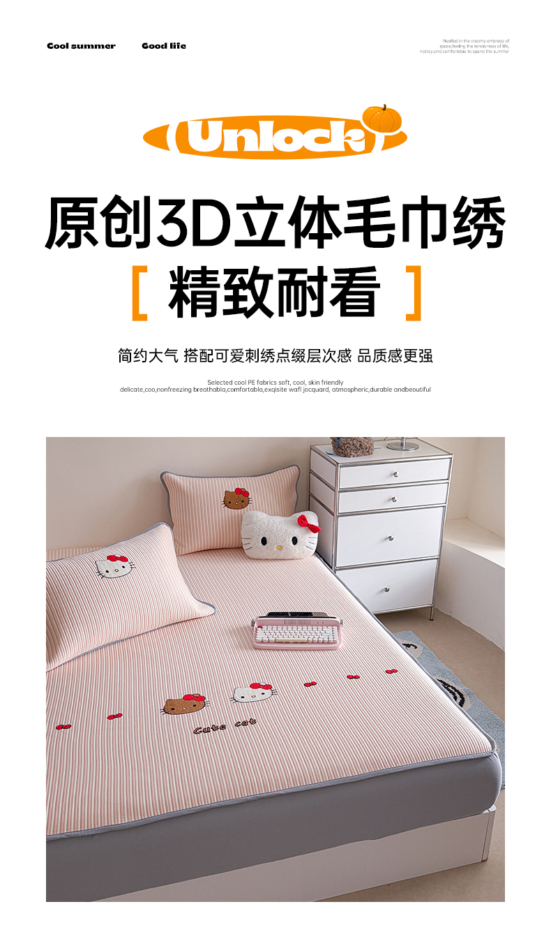 (总)暖生活 2026新款3DMAX超凉感原创PE冰丝软席子凉席-床笠款,组合图仅供展示不可下单,蝶语甜喵,粉条KT,蜜蜂小熊,奶蓝星兔,茄子企鹅,小狗乐园