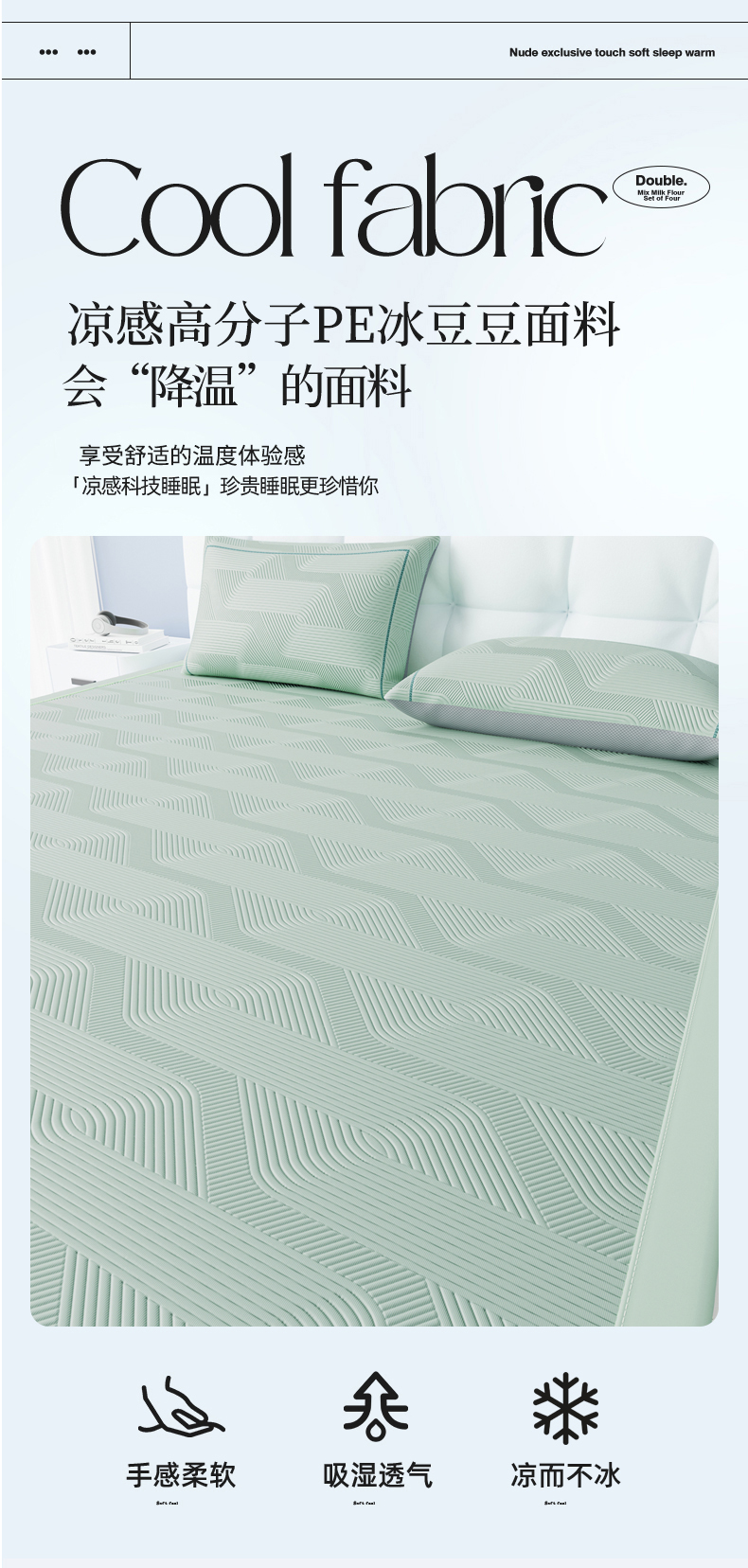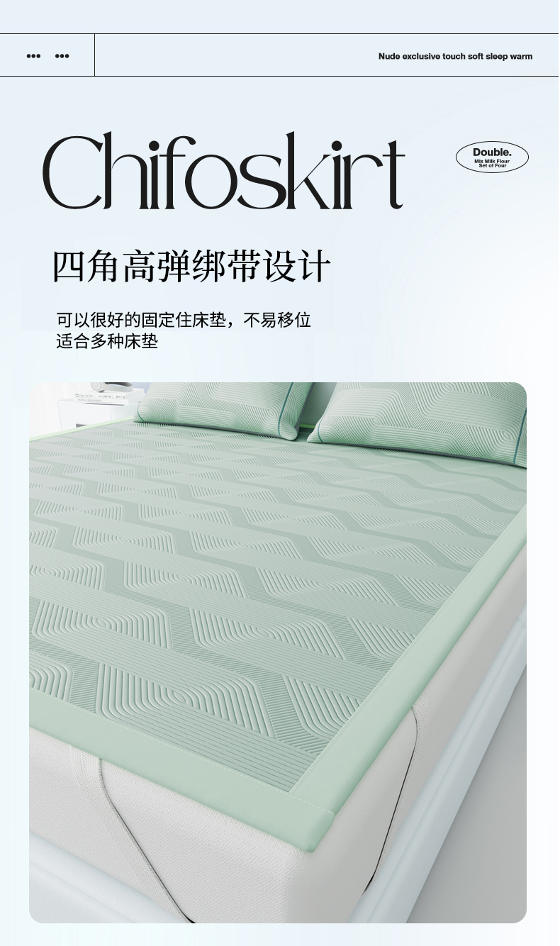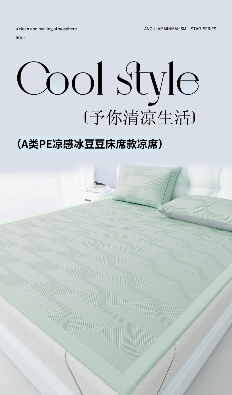 当前位置: 91家纺网 > 商品网购 > 床上用品 > 凉席 > 凉席套件 > 怡源梦 2026新款PE高分子加厚三明治冰豆豆水波纹全包包边凉席席子 水波纹-绿色
