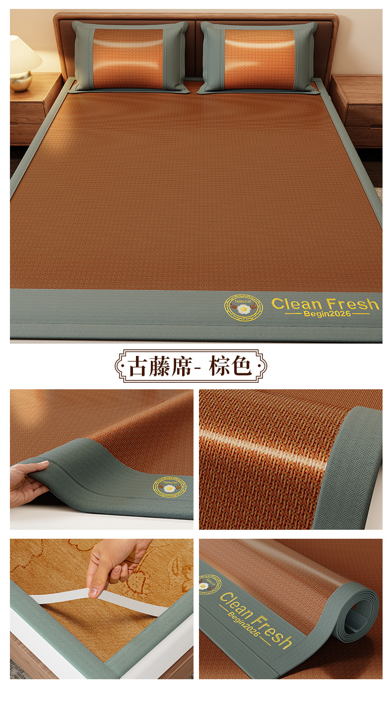 当前位置: 91家纺网 > 商品网购 > 床上用品 > 凉席 > 藤席 > 怡源梦 2026新款古藤席刺绣双面系列 古藤席-棕色