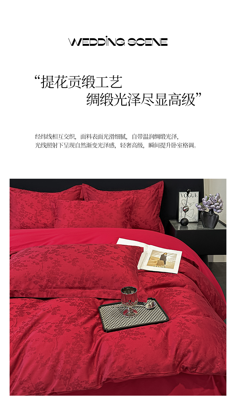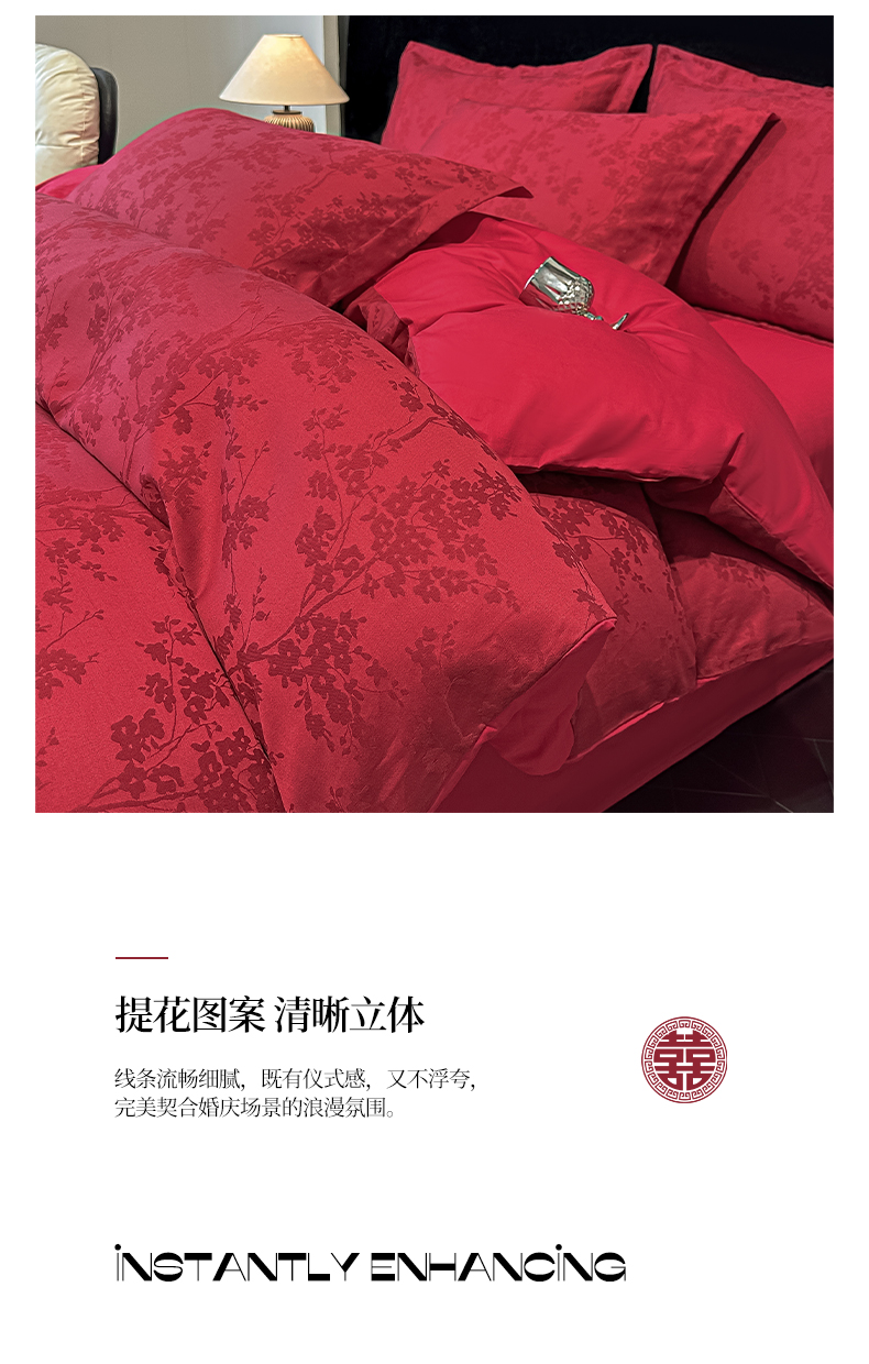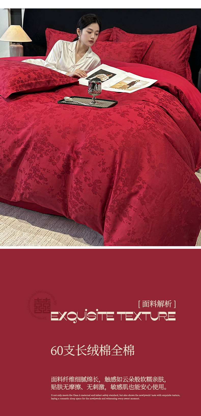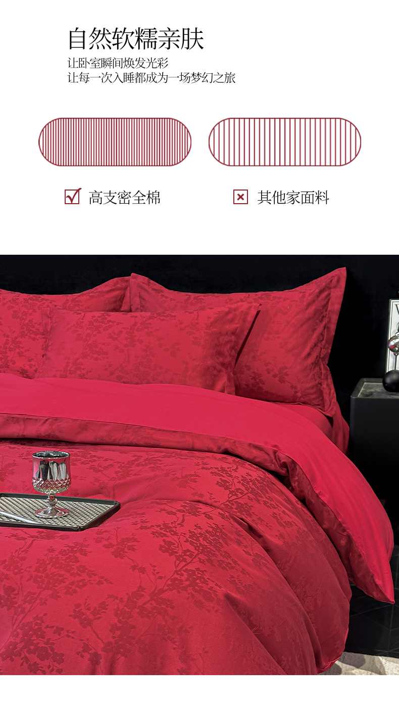 (总)宅家居 2026新款婚庆系列A类A版60支立体浮雕贡缎提花光泽绸缎感B版长绒棉纯棉四件套,幻纤影-红,清风颂雅-红,凯迪娜-红,梦幻花园-红,恋曲花语-红