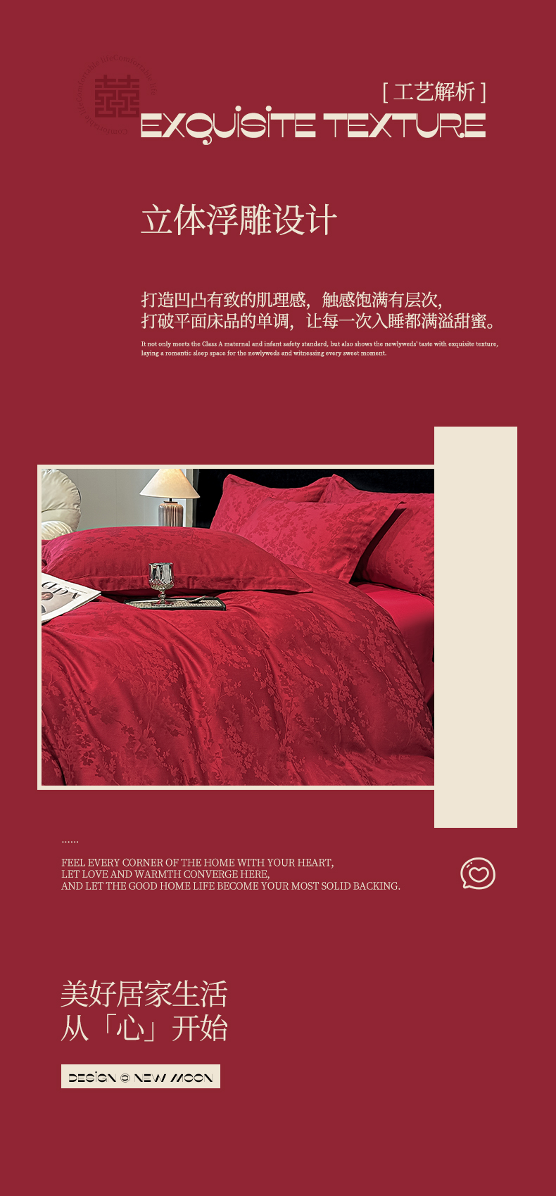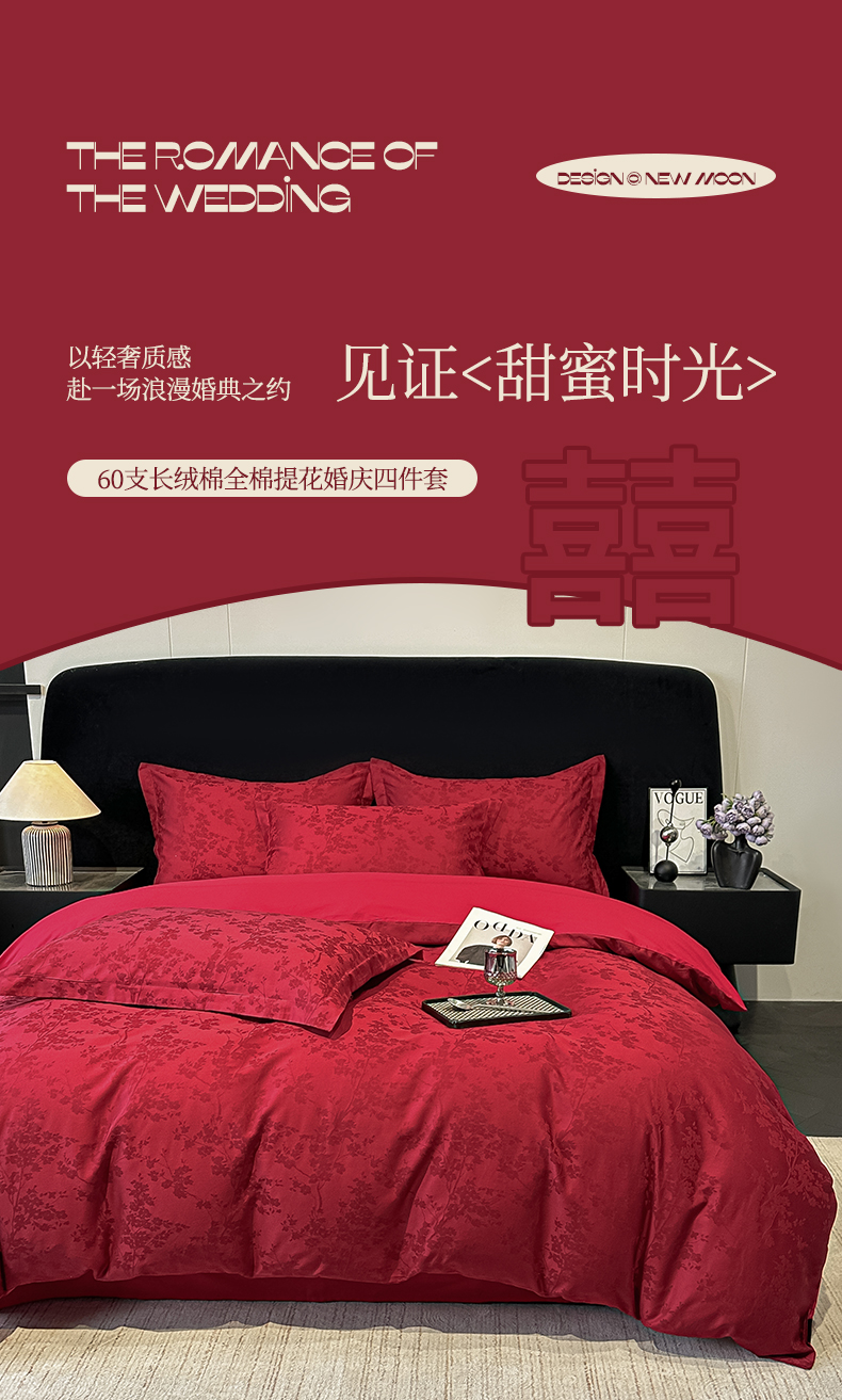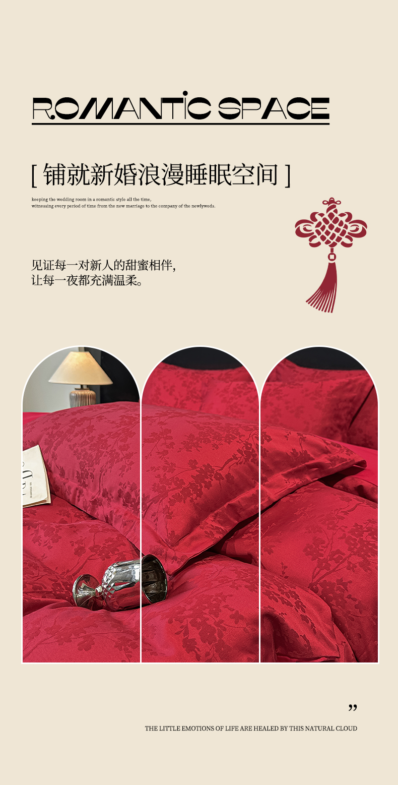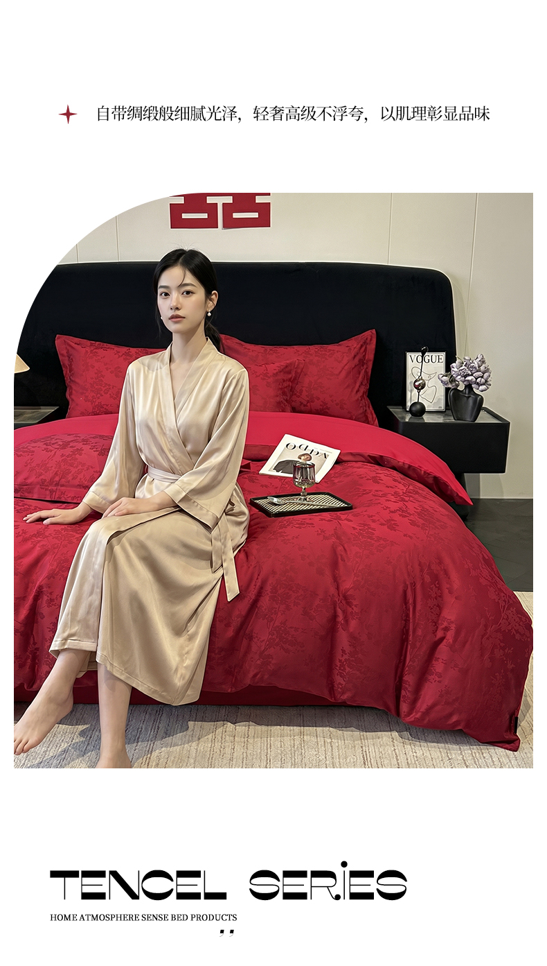 (总)宅家居 2026新款婚庆系列A类A版60支立体浮雕贡缎提花光泽绸缎感B版长绒棉纯棉四件套,幻纤影-红,清风颂雅-红,凯迪娜-红,梦幻花园-红,恋曲花语-红