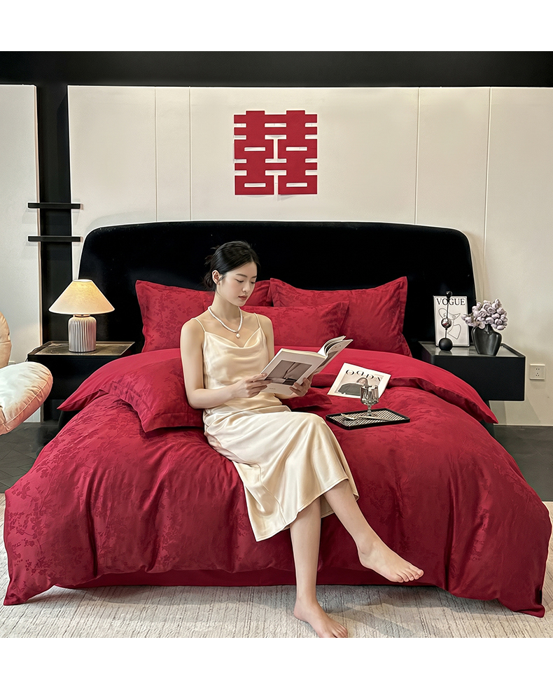 宅家居 2026新款婚庆系列A类A版60支立体浮雕贡缎提花光泽绸缎感B版长绒棉纯棉四件套 梦幻花园-红