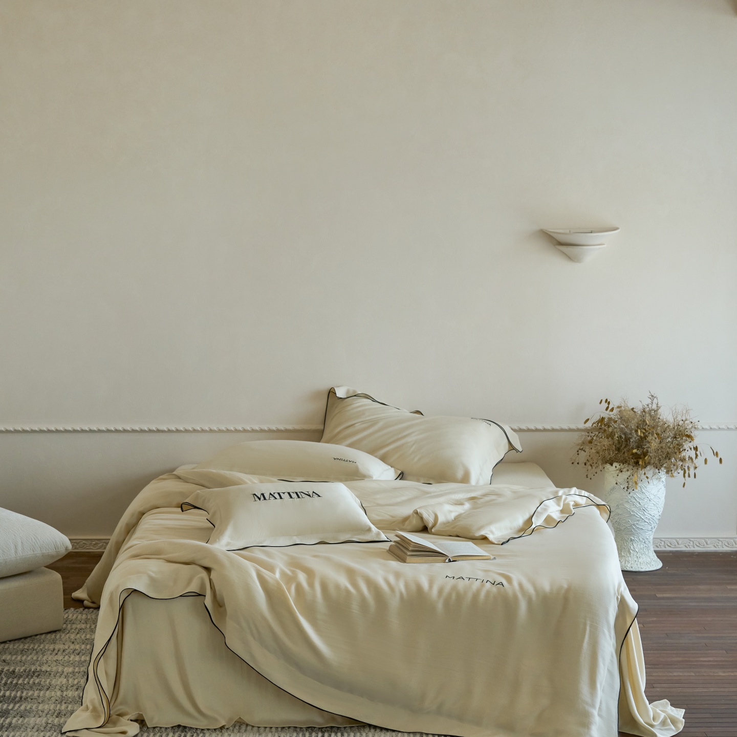 (总)安莱生活 2026新款天丝棉滚边款刺绣织序系列四件套,织序-白咖,织序-白巧,织序-摩卡,织序-银灰