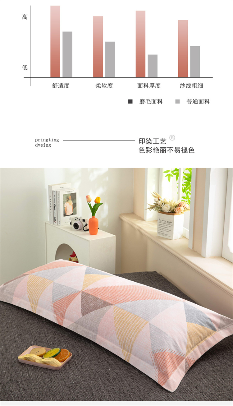 喜相逢家纺2024新款 D26-双人枕套-纯棉磨毛长枕套全棉磨毛