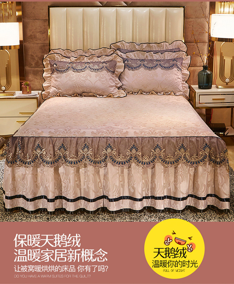 (总)网红馆(ck家纺) 2025新款色织提花牛奶绒床裙四件套-洛丽塔系列,洛丽塔-豆沙,洛丽塔-蓝色,洛丽塔-米色