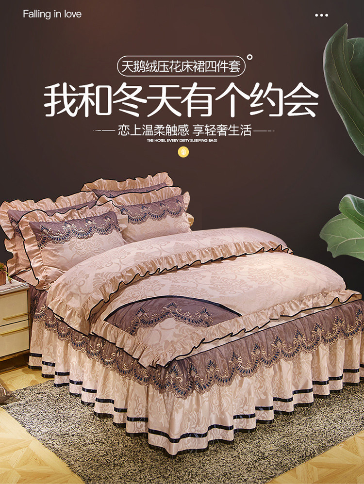 商品名称:网红馆 2025新款天鹅绒盛世经典床裙四件套 米黄